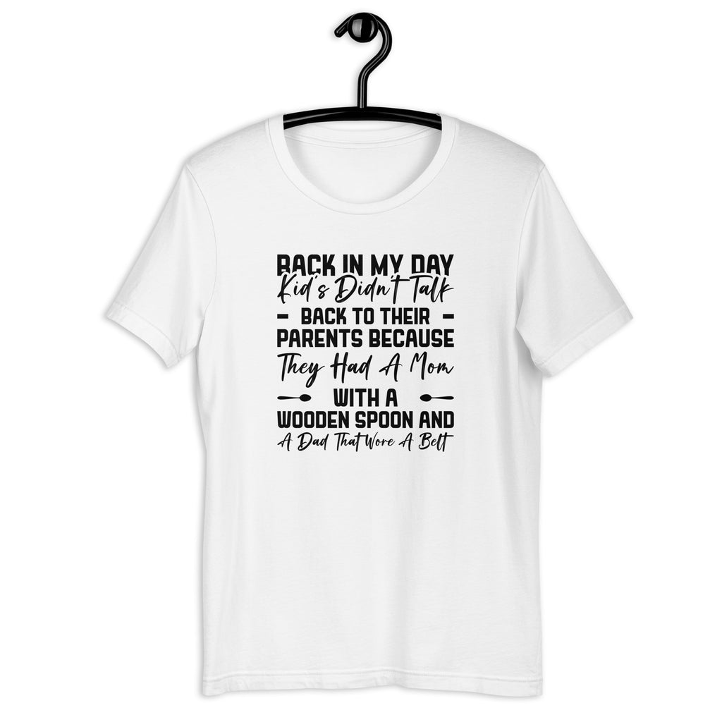 Blunt, unapologetic, and dripping with old-school attitude. The “Back in My Day Kids Didn’t Talk Back” t-shirt is a darkly humorous throwback to a time when discipline was real, respect was non-negotiable, and consequences had names—like wooden spoon and dad’s belt. It’s not about glorifying the past; it’s about surviving it and laughing now.