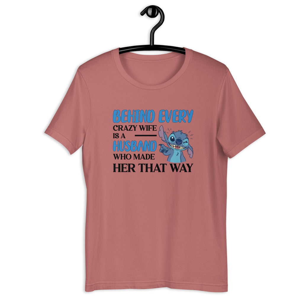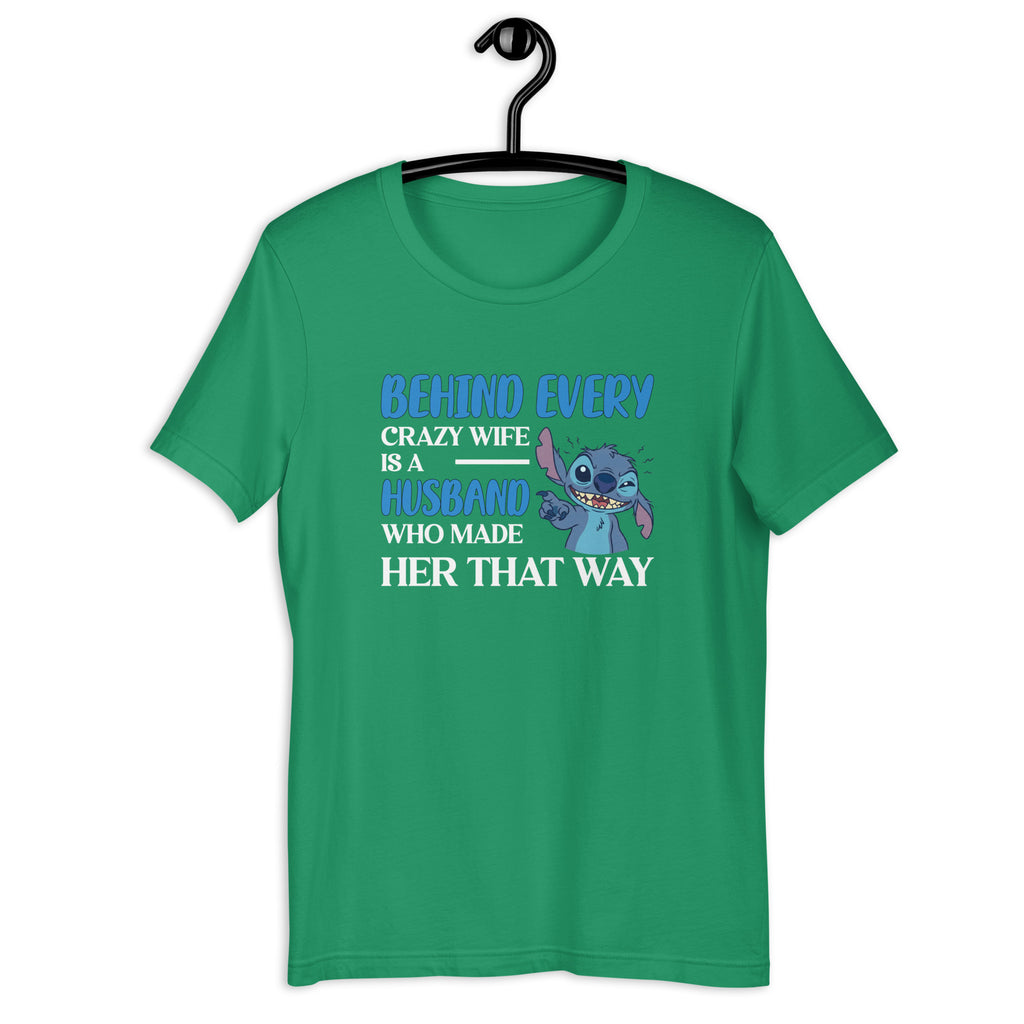 Let everyone know there’s always a story behind the madness with the “Behind Every Crazy Wife Is a Husband Who Made Her That Way” T-shirt. This tee delivers the perfect mix of humor, honesty, and relationship realness — ideal for wives who own their chaos and husbands who know exactly why it exists.
