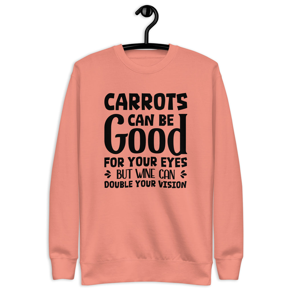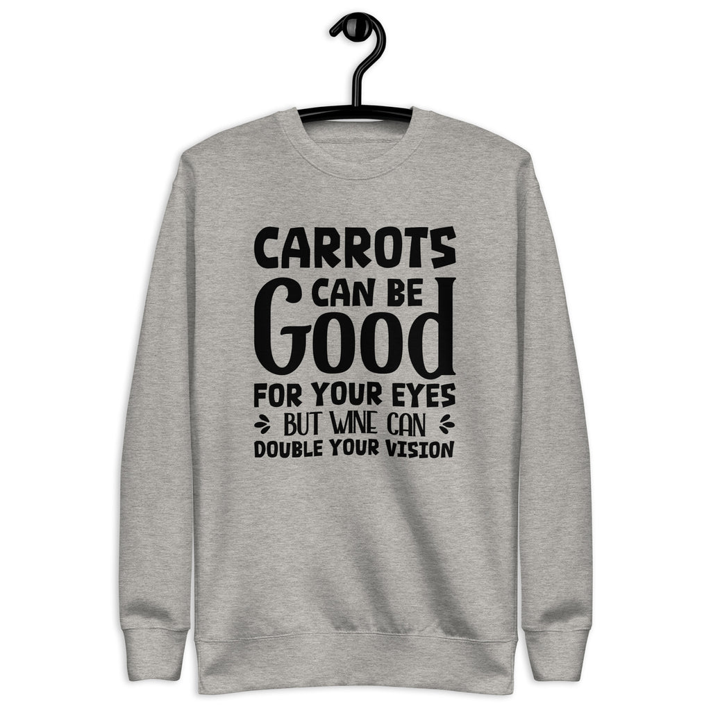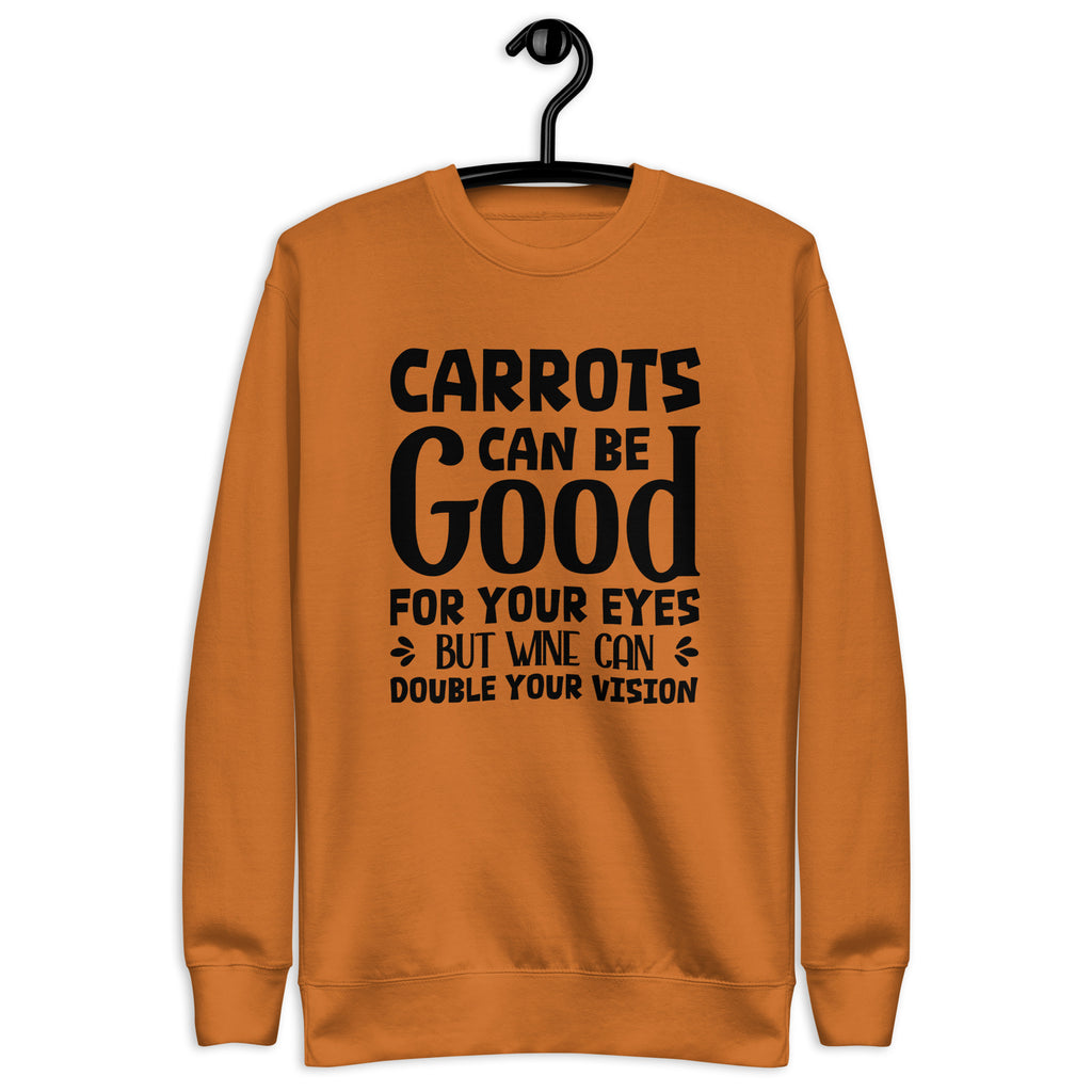 Funny, clever, and just the right amount of cheeky. The “Carrots Can Be Good for Your Eyes — But Wine Can Double Your Vision” sweatshirt is perfect for anyone who loves a smart joke with a splash of truth. It’s a playful reminder that balance is everything… especially when wine is involved.