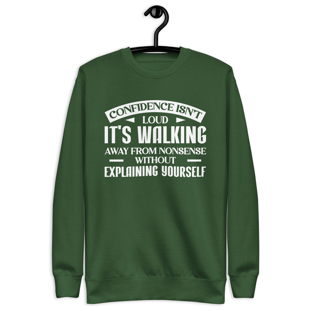 Calm, grounded, and powerfully self-assured — this “Confidence Isn’t Loud, It’s Walking Away from Nonsense Without Explaining Yourself” sweatshirt is made for those who’ve mastered the art of quiet strength. You don’t raise your voice, you don’t argue, and you definitely don’t waste energy — you simply step back with dignity and let your peace speak for you.
