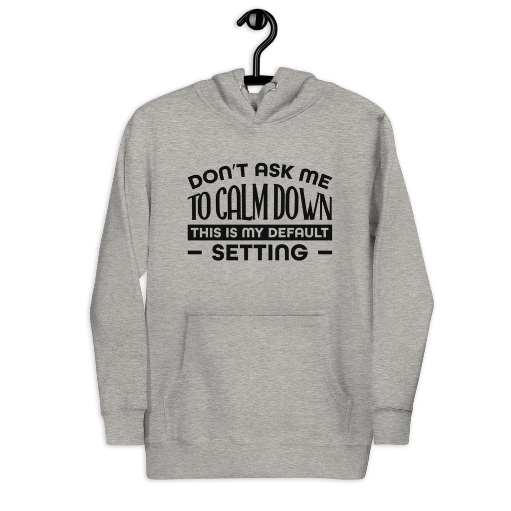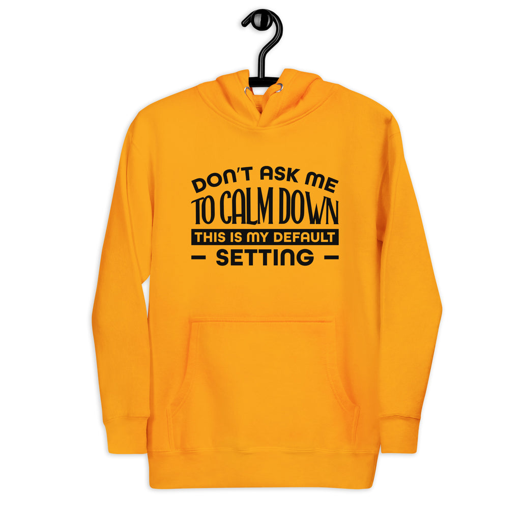 This “Don’t Ask Me to Calm Down — This Is My Default Setting” hoodie is for the high-energy, high-attitude souls who run on passion, caffeine, and mild chaos. It’s not anger — it’s personality with extra volume. Perfect for anyone who’s tired of being told to “relax” when they’re simply existing at full power.