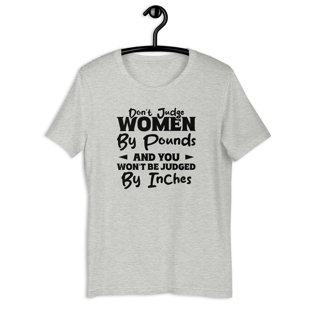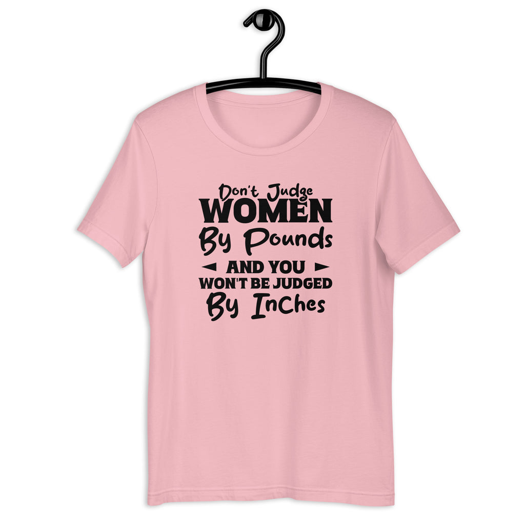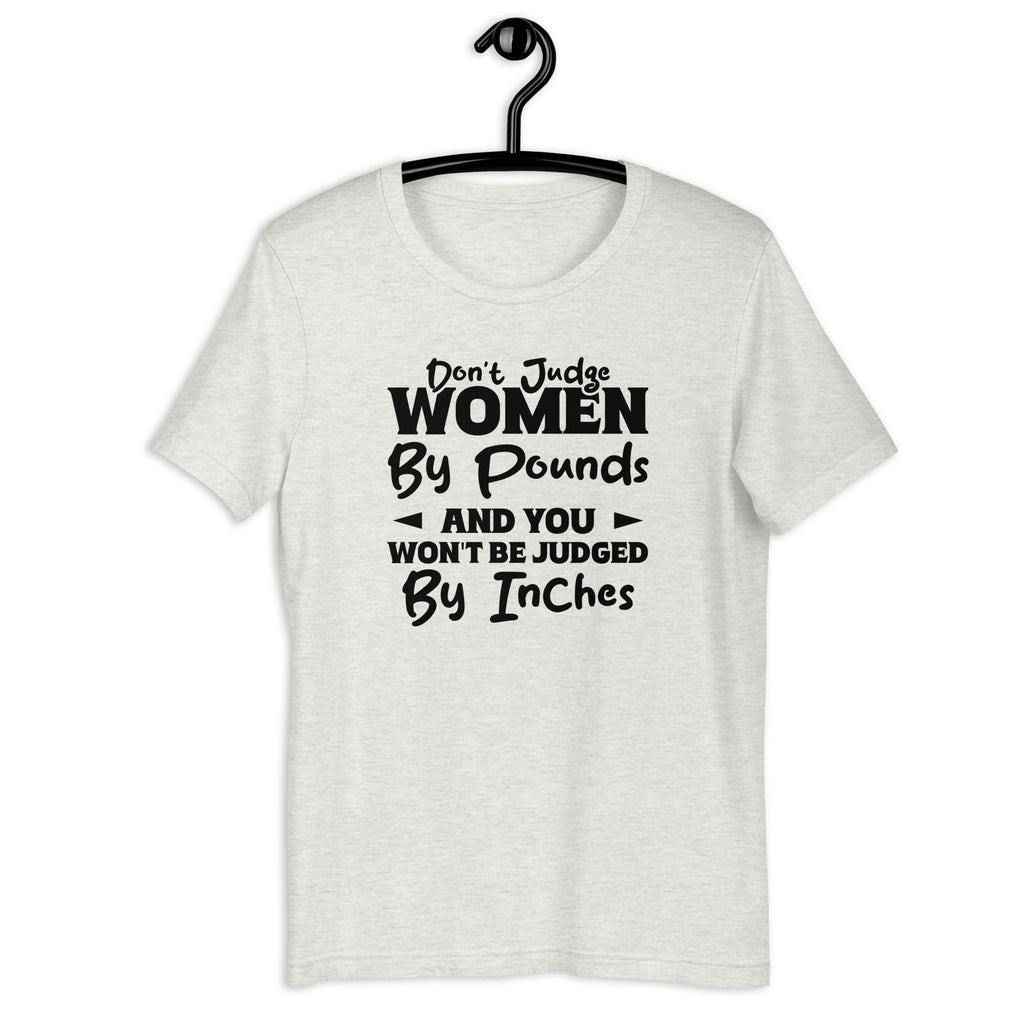 Make a statement with this “Don’t Judge Women by Pounds and You Won’t Be Judged by Inches” t-shirt! Perfect for confident women with a bold sense of humor, this tee delivers sass, wit, and self-assured energy all in one.