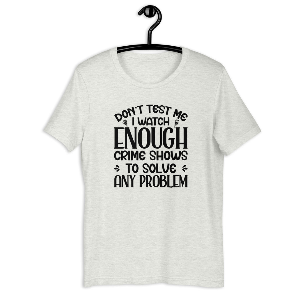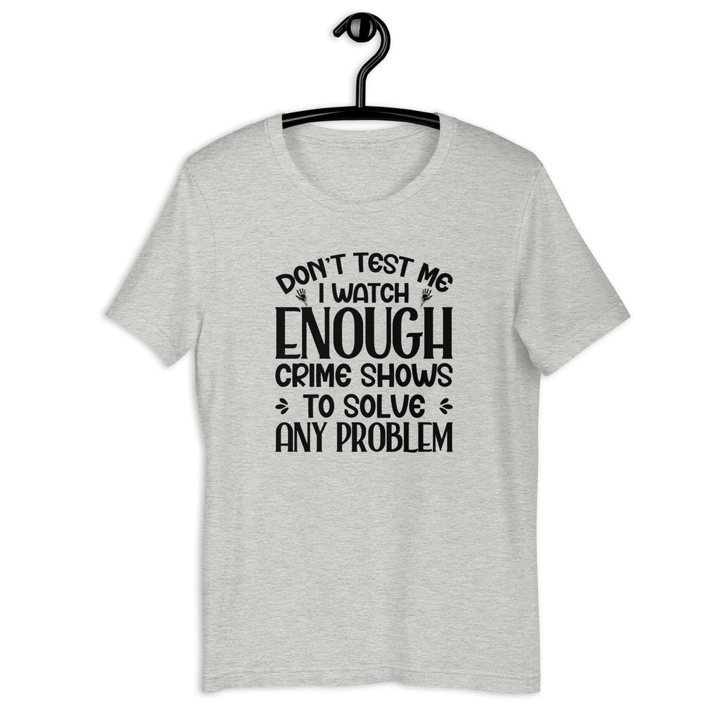 Funny, edgy, and a little intimidating. The “Don’t Test Me—I Watch Enough Crime Shows to Solve Any Problem” t-shirt is perfect for anyone with a sharp sense of humor and a hint of mischief. It’s a playful way to warn people you’re not someone to mess with… with style.