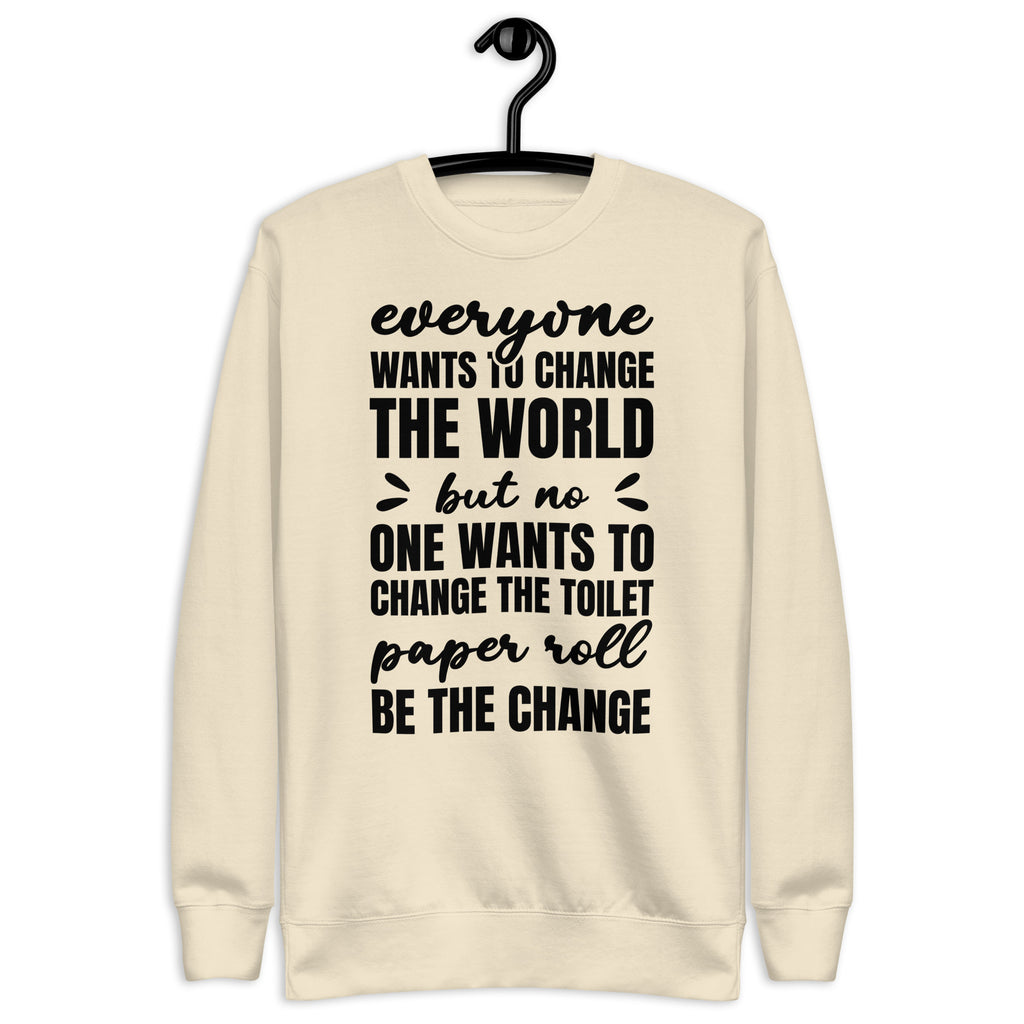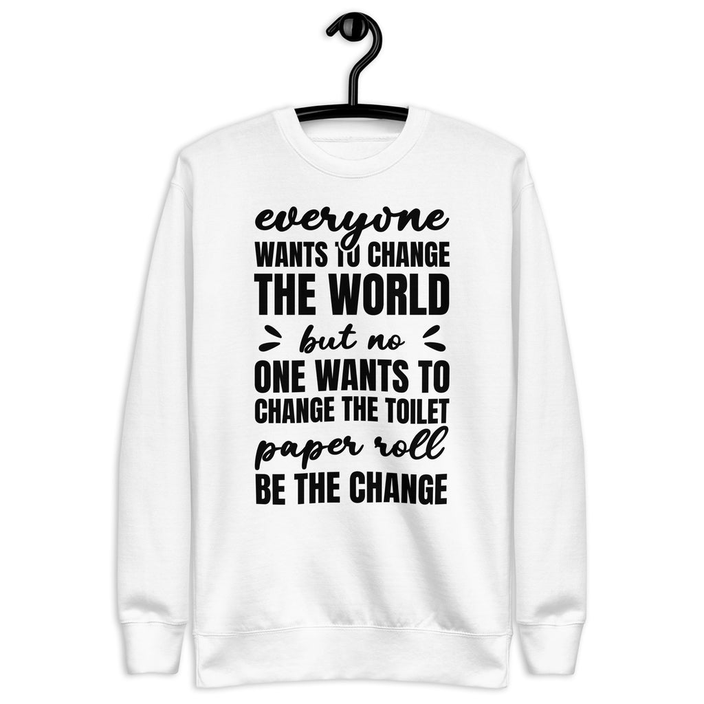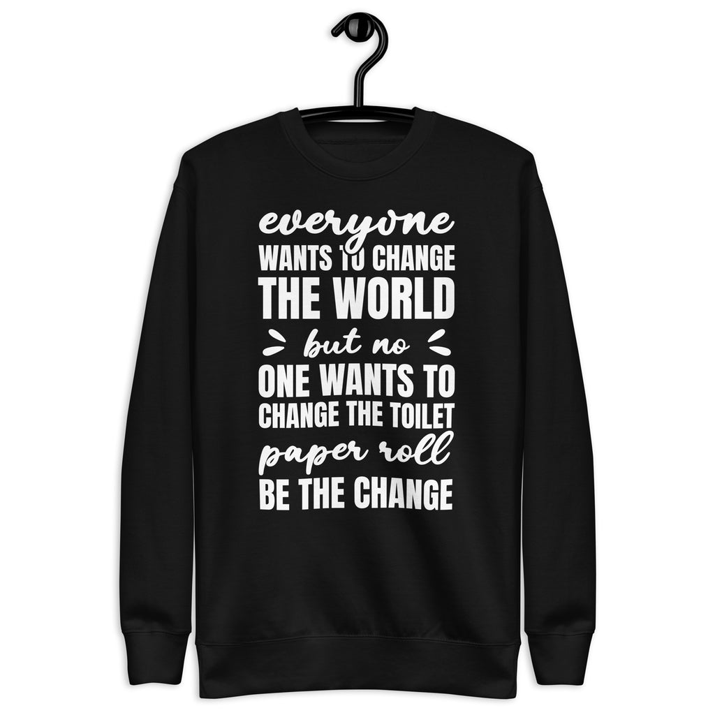 Spread a little truth (and a lot of laughs) with the “Everyone Wants to Change the World but No One Wants to Change the Toilet Paper Roll—Be the Change” sweatshirt. Equal parts funny and relatable, this cozy piece is perfect for anyone who’s tired of being the only one responsible for the TP swap. It’s a reminder that even the smallest actions can make the biggest difference.