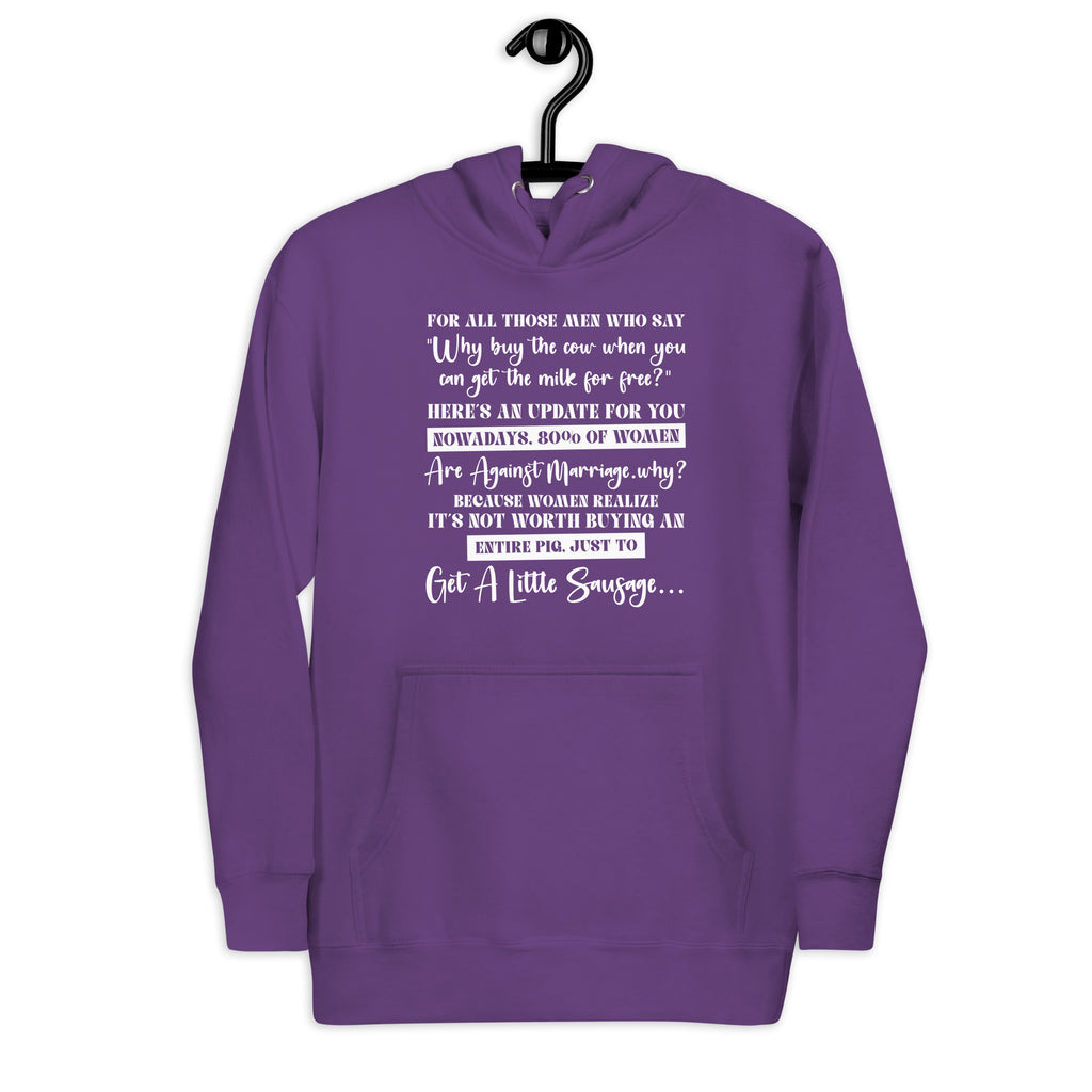 Turn up the sass and serve some truth with this “Why Buy the Cow When You Can Get the Milk for Free? Here’s an Update for You…” hoodie. Perfect for women with a bold sense of humor and zero tolerance for outdated sayings, this cheeky hoodie delivers laughs and attitude in equal measure.