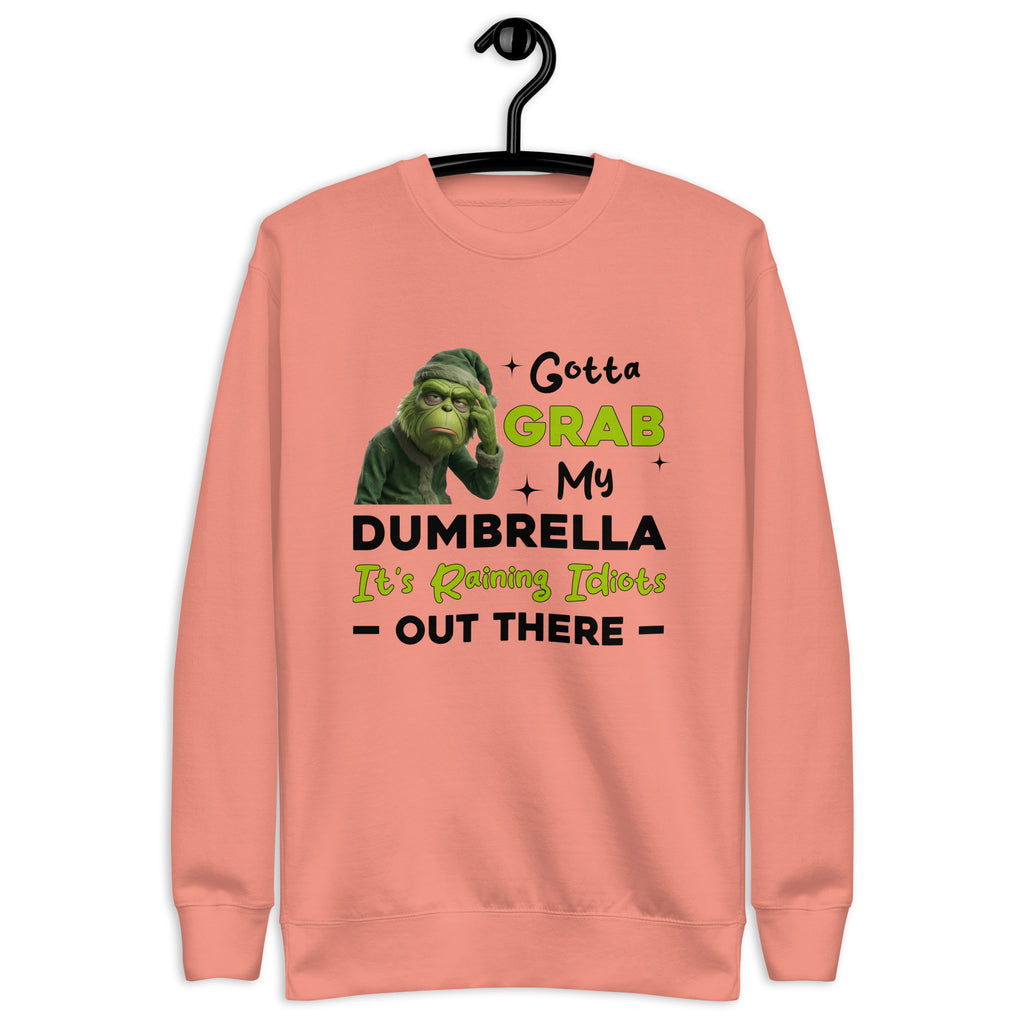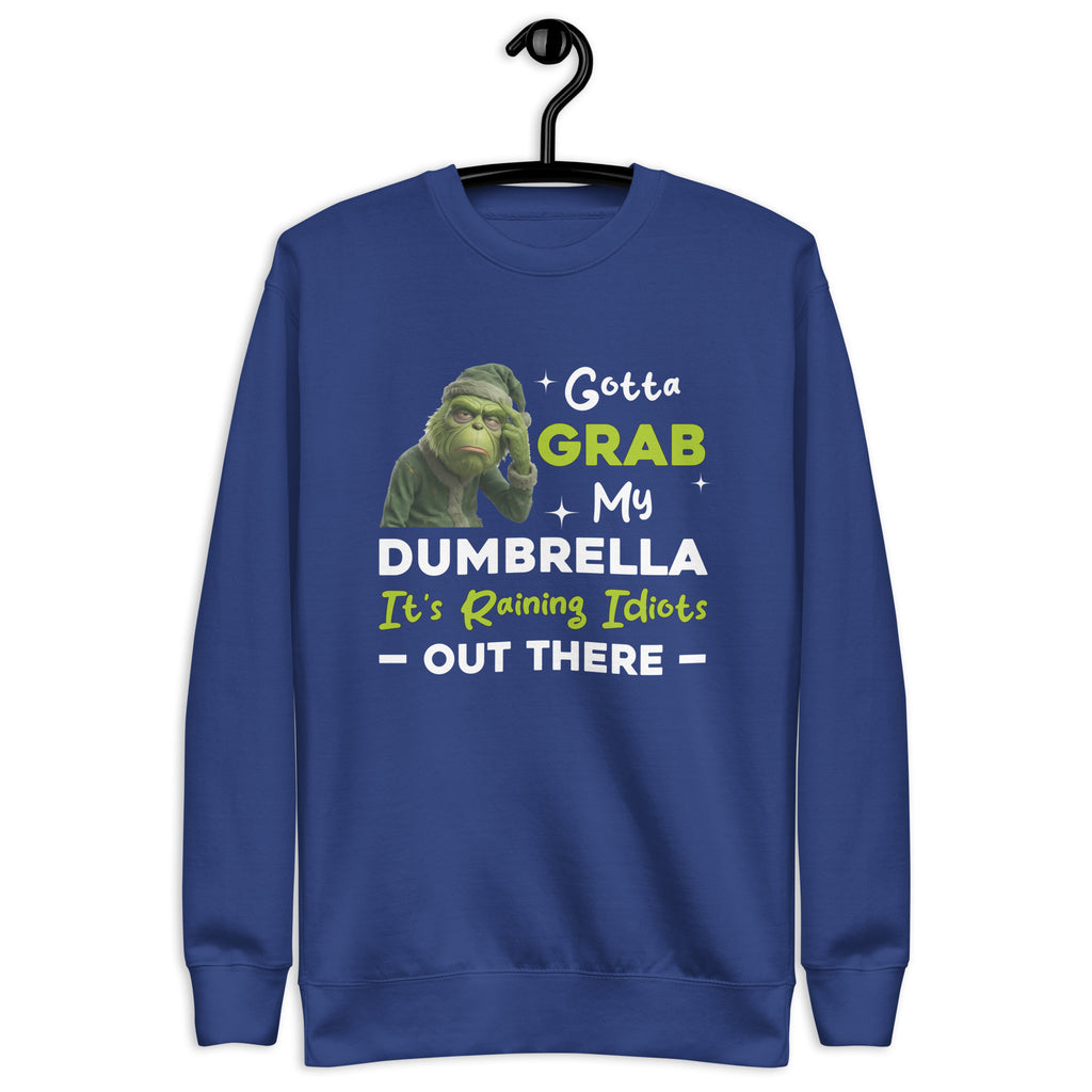 Stay dry from the nonsense with this bold, sarcastic sweatshirt that says it all. Featuring the phrase “Gotta Grab My Dumbrella — It’s Raining Idiots Out There,” this design delivers humor with a sharp edge and zero apologies. Perfect for days when common sense feels rare, this sweatshirt lets your attitude do the talking while you stay comfortable and warm.