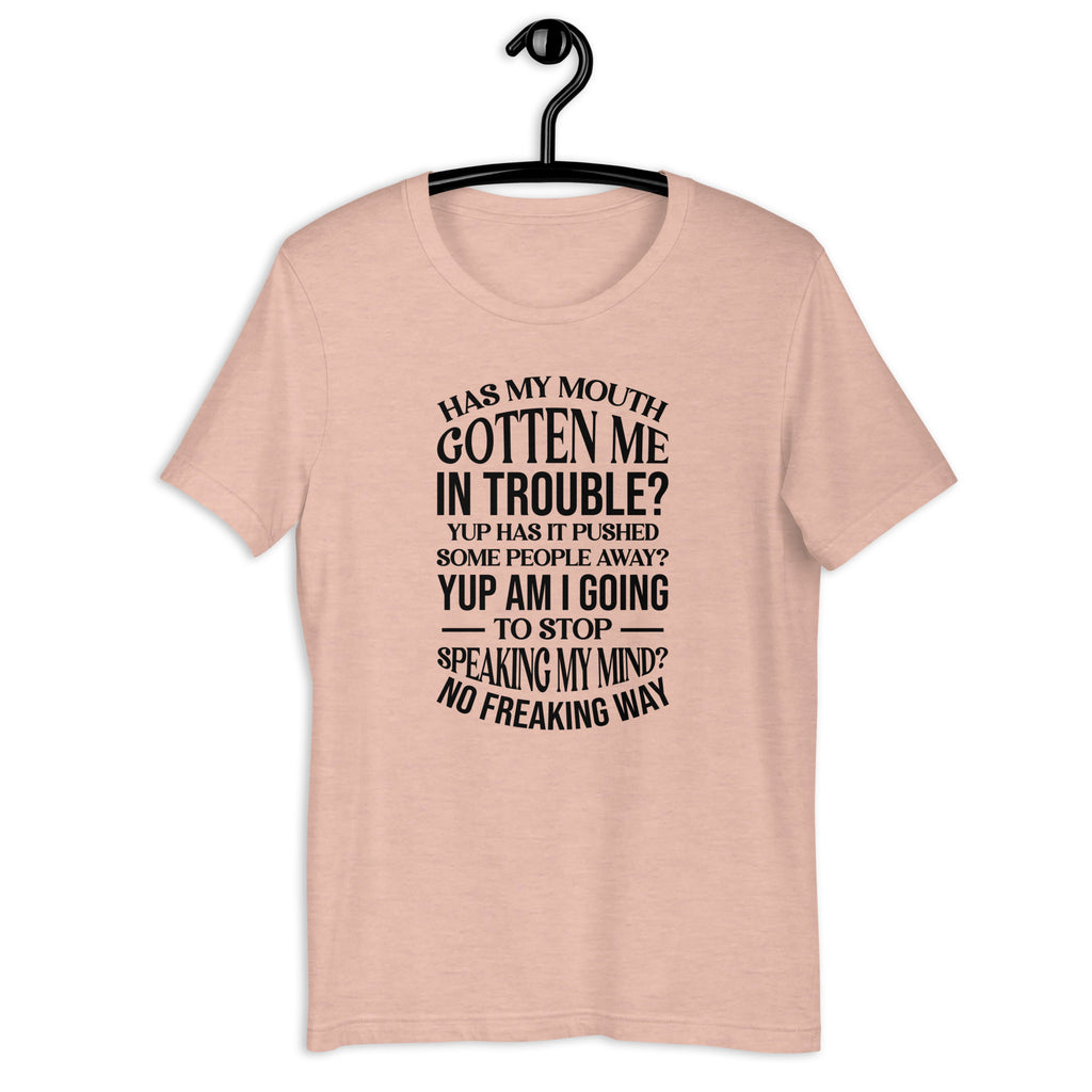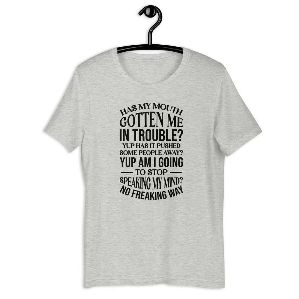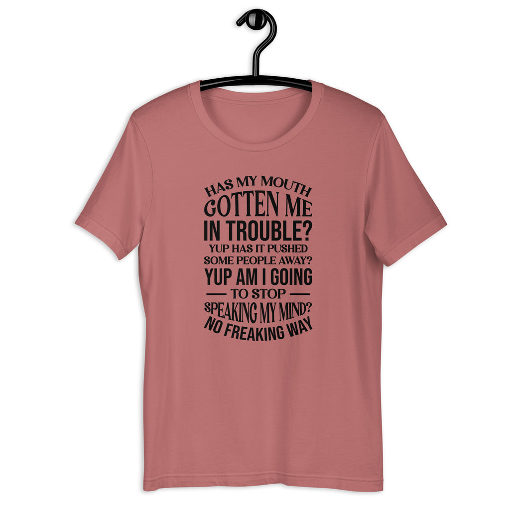 The “Has My Mouth Gotten Me in Trouble? Yup” t-shirt is made for the unapologetically outspoken. If your honesty has ruffled feathers, pushed a few people away, or gotten you into hot water—but you wouldn’t change a thing—this tee says it all loud and proud.
