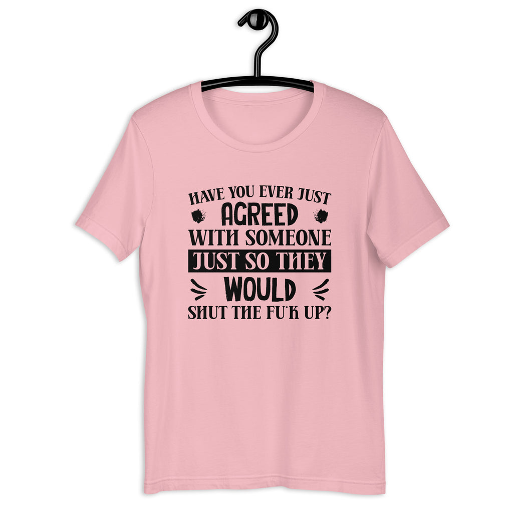 Honest, dryly humorous, and unmistakably relatable. The “Have You Ever Just Agreed With Someone Just So They Would Shut the F*** Up?” T-shirt speaks to those quiet moments of social exhaustion we all know too well. It’s a lighthearted acknowledgment of choosing peace over pointless debate—and finding humor in everyday interactions.