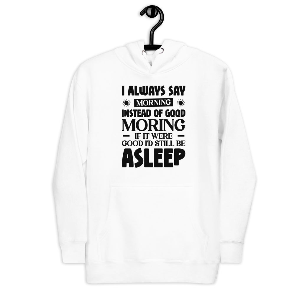 For the people who greet the day with eye rolls instead of sunshine — this “I Always Say ‘Morning’ Instead of ‘Good Morning’ — If It Were Good, I’d Still Be Asleep” hoodie is the official uniform of non-morning humans everywhere.