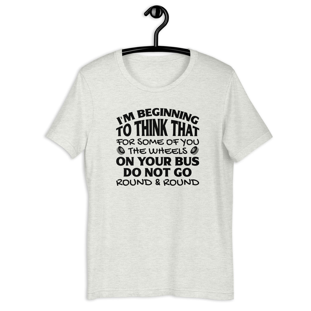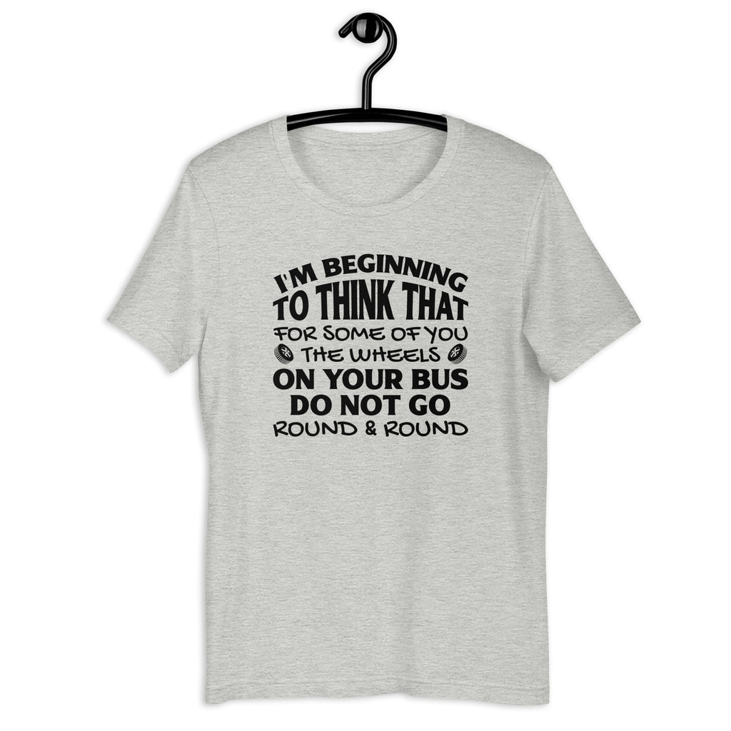 Add some sharp humor to your wardrobe with the “I Am Beginning to Think That for Some of You the Wheels on Your Bus Do Not Go Round and Round” t-shirt. A witty twist on a classic children’s rhyme, this tee is perfect for anyone who loves a clever comeback with a side of sass.