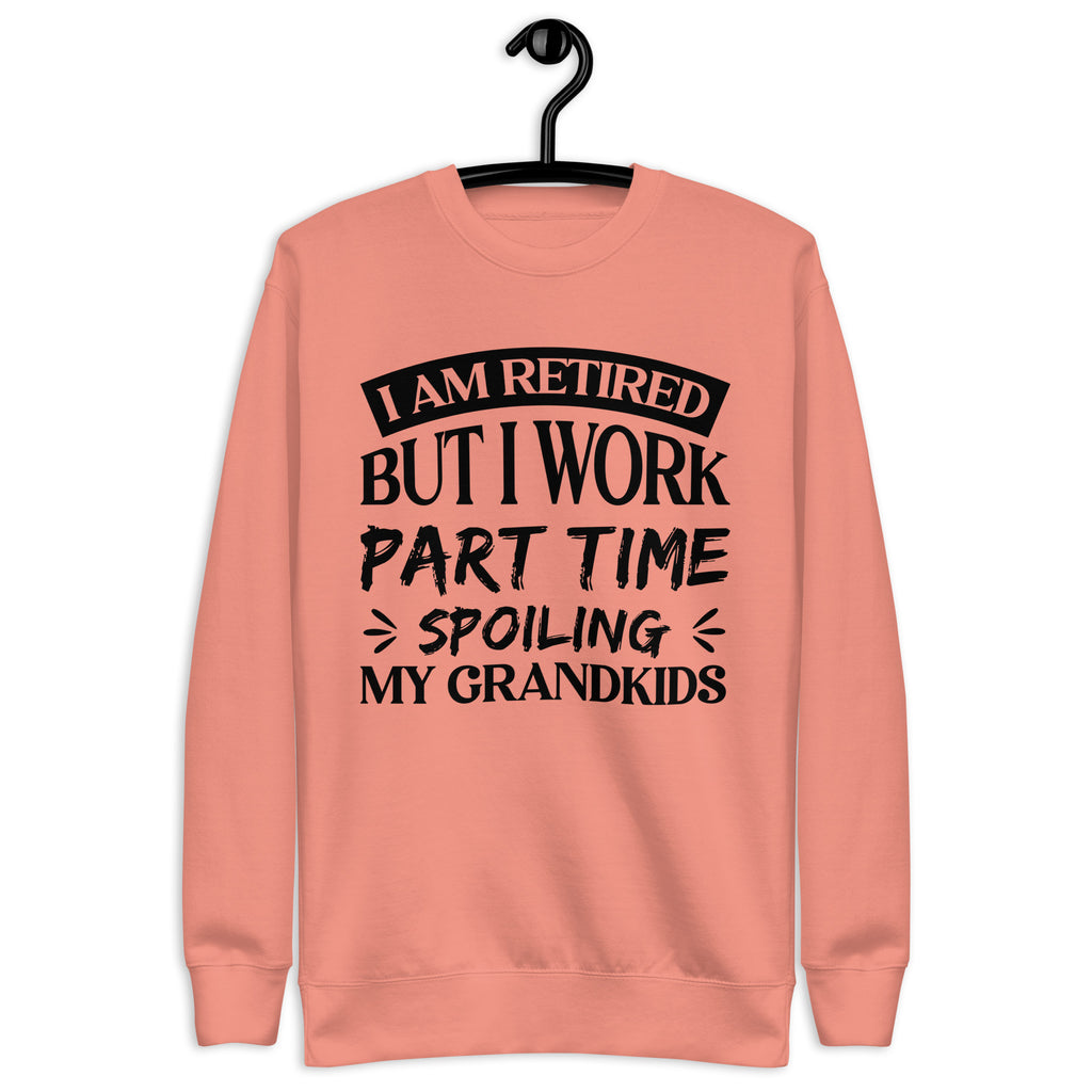 This “I AM Retired But I Work Part-Time Spoiling My Grandkids” sweatshirt is for the proud grandparents who traded alarm clocks for late nights, laughter, and a side hustle in unconditional love (and snacks). Perfect for those who may be retired on paper but are still full-time heroes in the grandkid department.