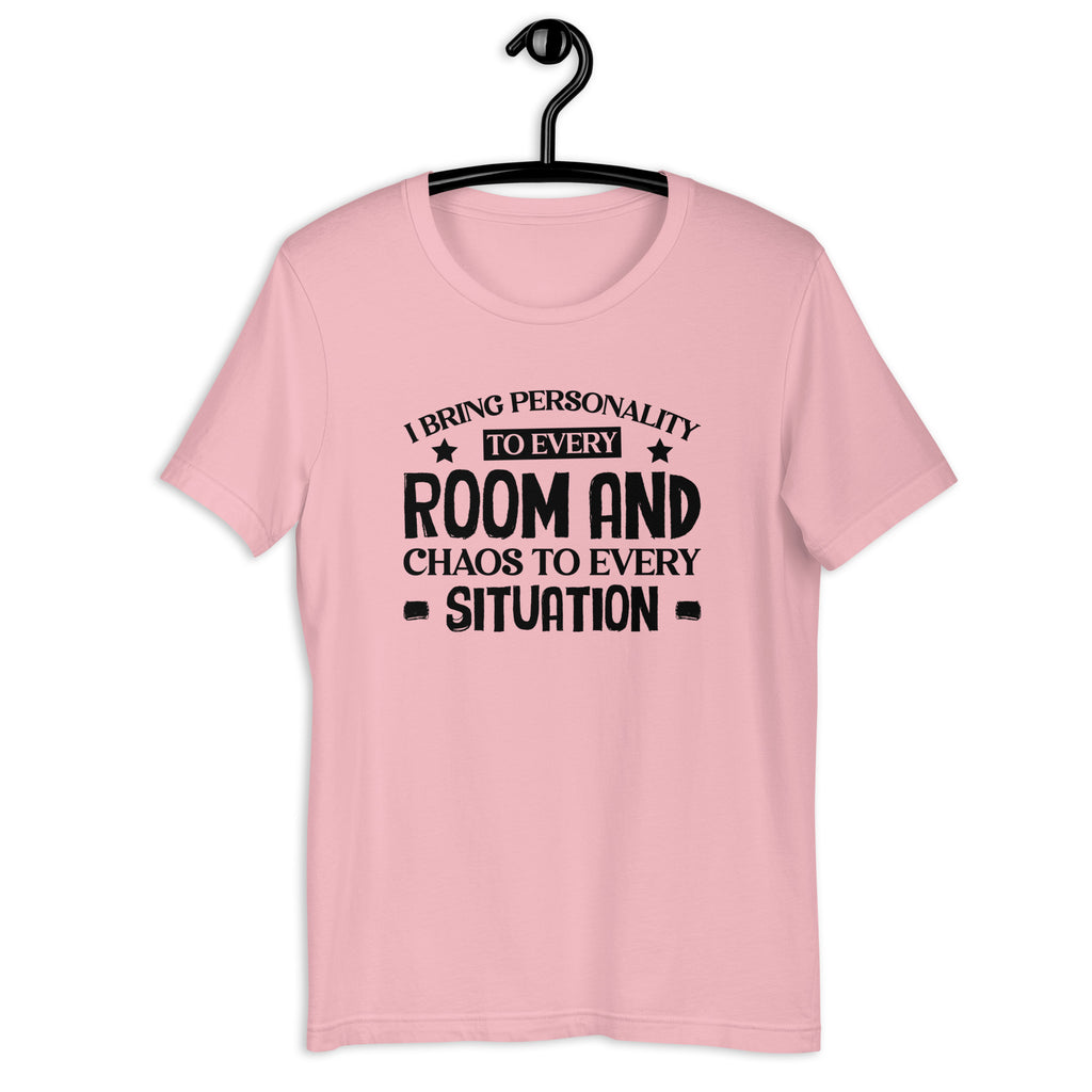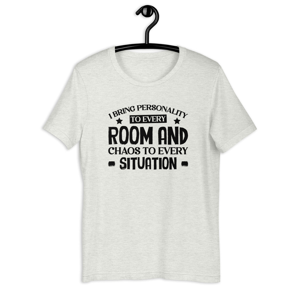 Embrace your bold, unforgettable presence with the “I Bring Personality to Every Room and Chaos to Every Situation” T-shirt. Perfect for anyone who walks in with charisma and walks out leaving stories behind, this tee captures the hilarious truth of being the spark, the energy, and occasionally…the beautiful disaster of every gathering.