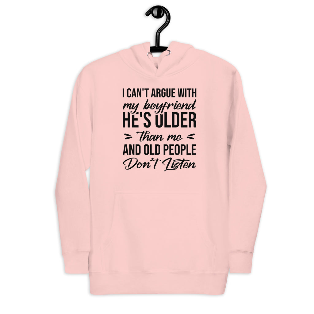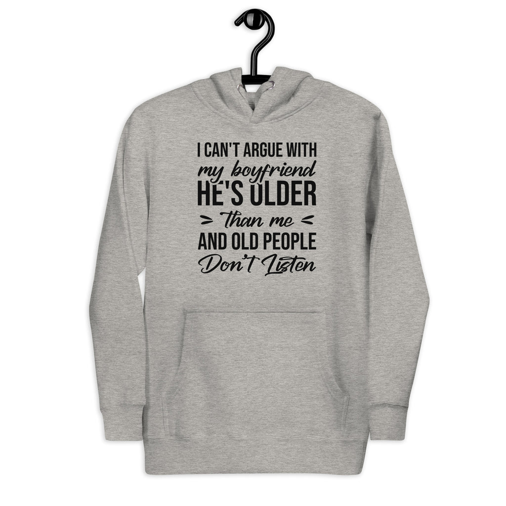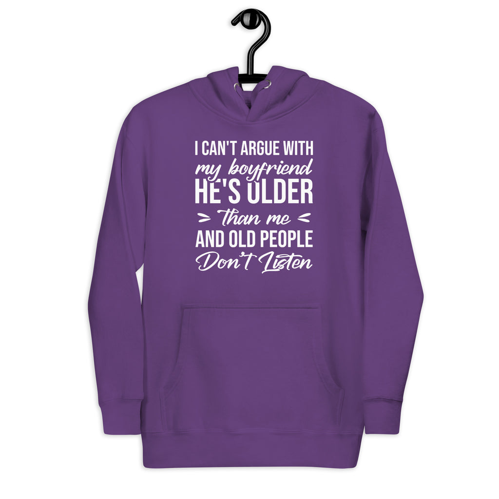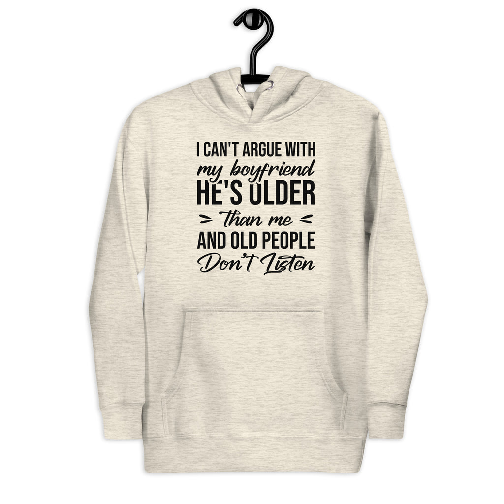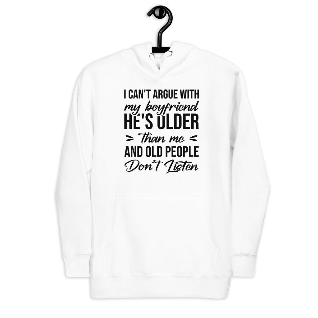 This “I Can’t Argue With My Boyfriend — He’s Older and Old People Don’t Listen” hoodie is the perfect blend of sass, humor, and playful relationship truth. Designed for anyone who’s mastered the art of eye rolls and selective silence, it’s a cozy way to declare that sometimes… you just can’t win (and that’s okay).