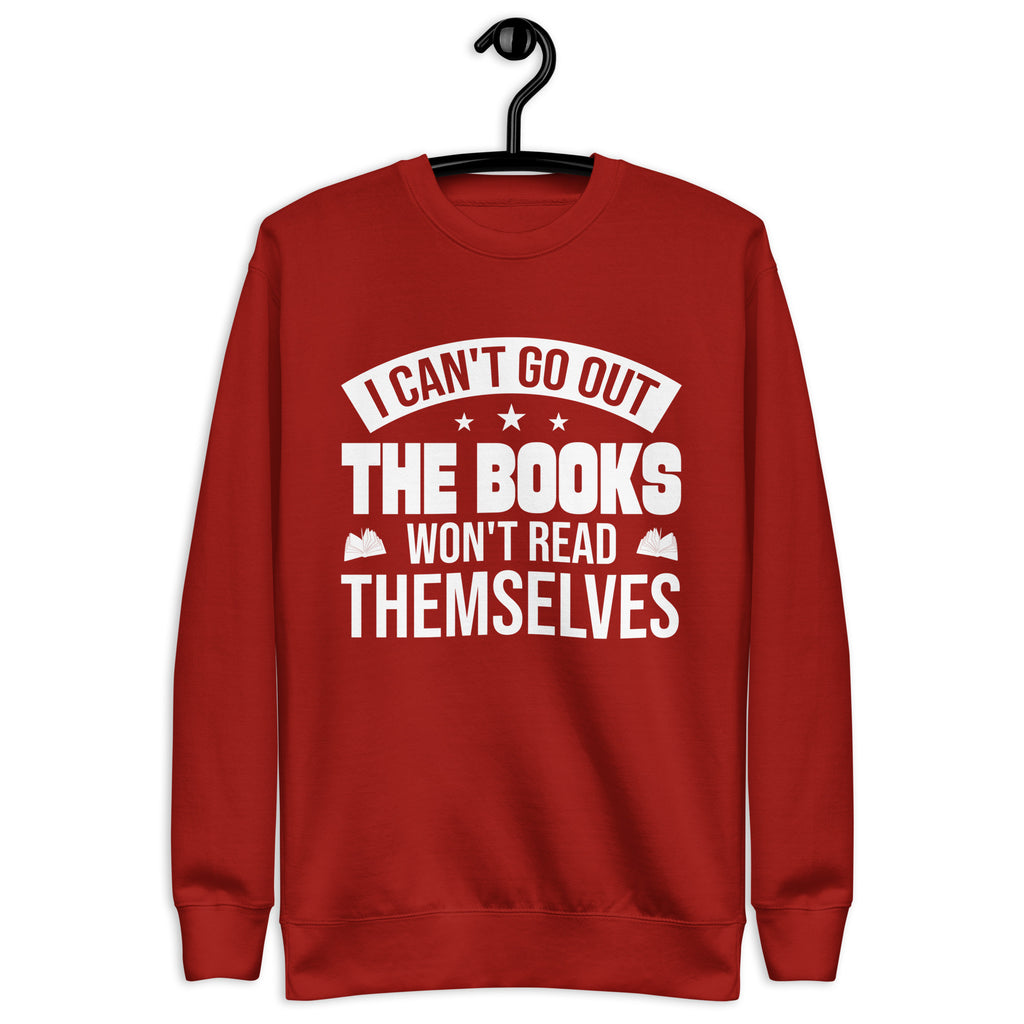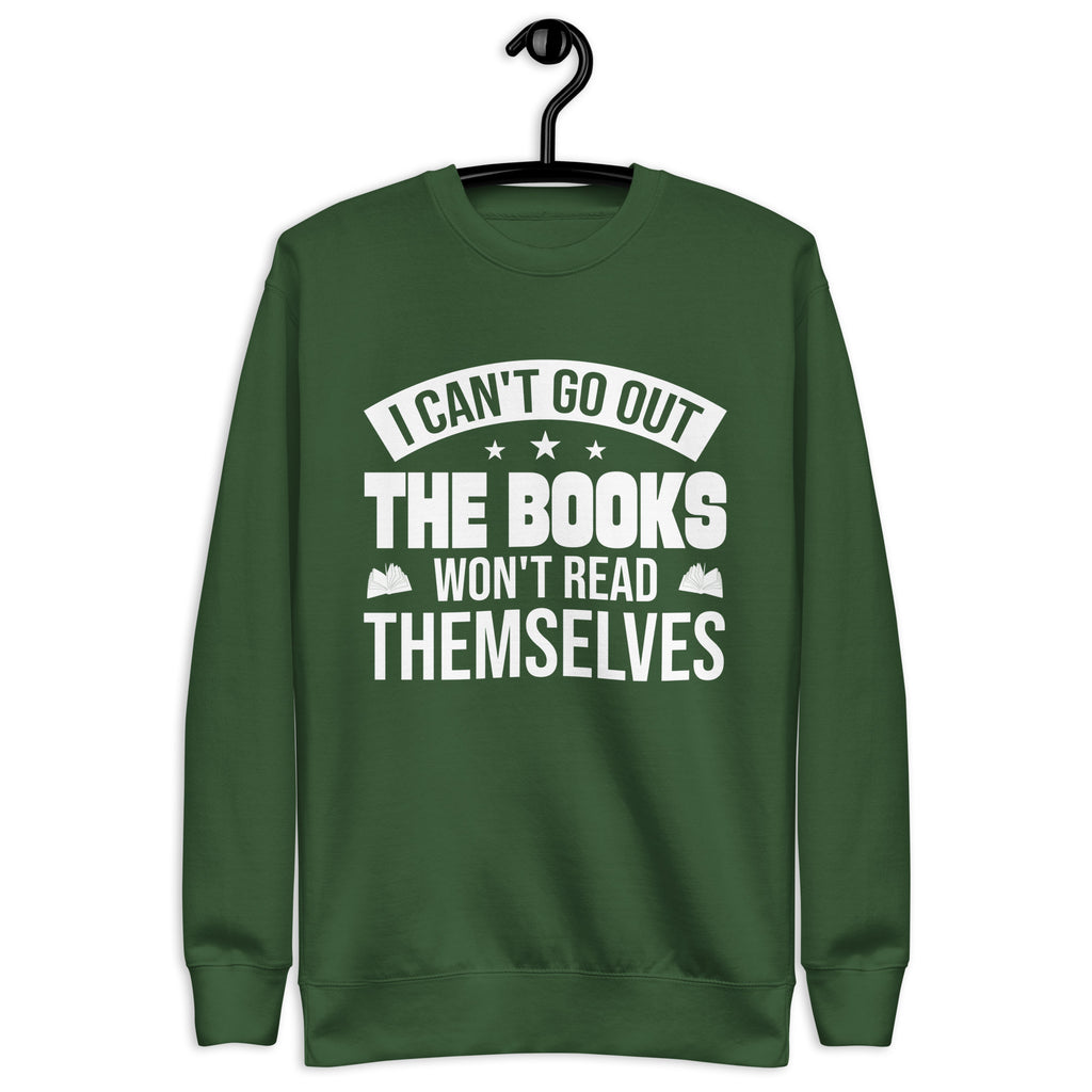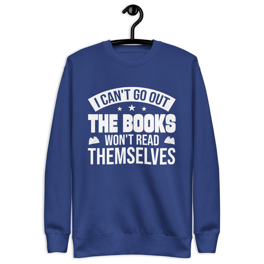 Snuggle up with your favorite stories in this “I Can’t Go Out — The Books Won’t Read Themselves” sweatshirt! Perfect for introverts, bookworms, and anyone who’d rather spend the night lost in another world than deal with the outside one, this sweatshirt adds a charming literary twist to your wardrobe.