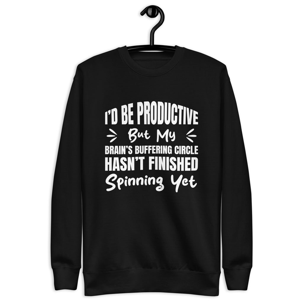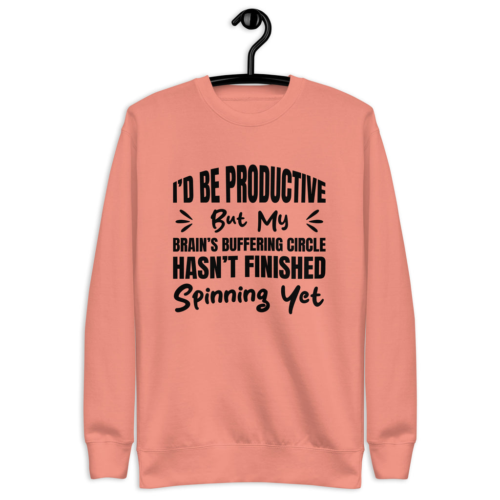 If productivity came with a loading bar, yours would still be stuck at 7%. This “I’d Be Productive, But My Brain’s Buffering Circle Hasn’t Finished Spinning Yet” sweatshirt perfectly captures that mentally-loading, not-quite-ready, please-hold feeling we all experience.