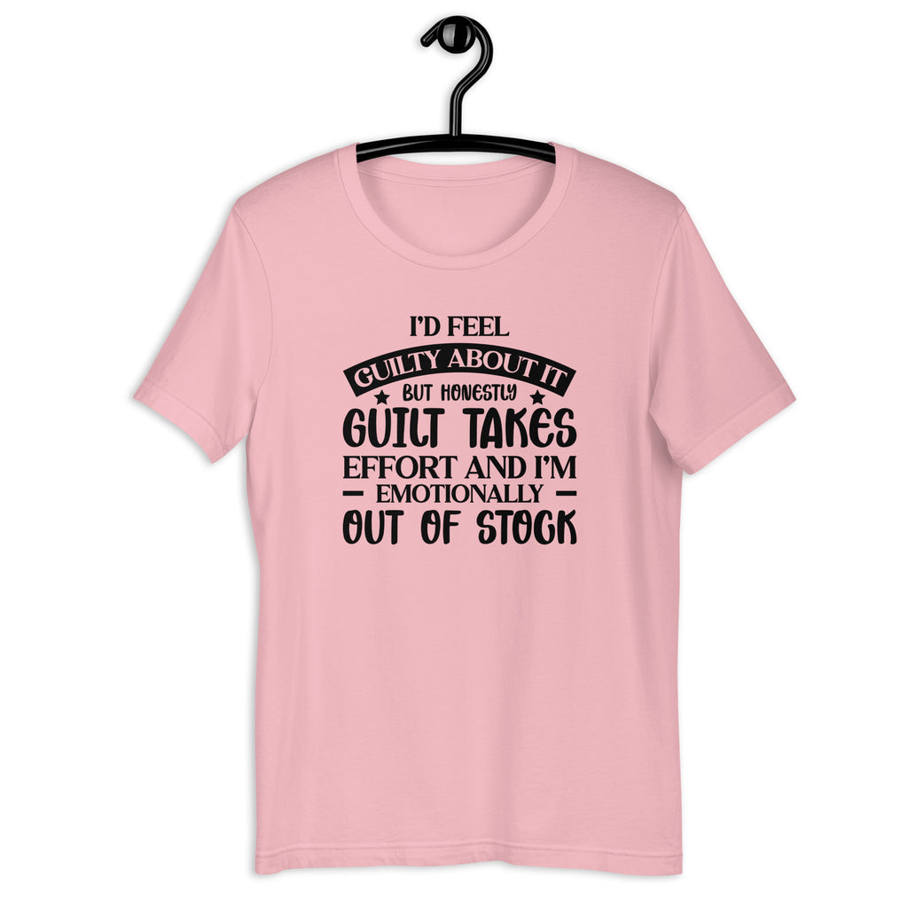 Keep it honest with the “I’d Feel Guilty About It ★ But Honestly, Guilt Takes Effort and I’m Emotionally Out of Stock” T-shirt. Perfect for anyone who’s fresh out of emotional energy, this tee captures the humor of caring… but not enough to stress about it.