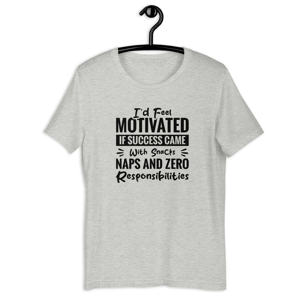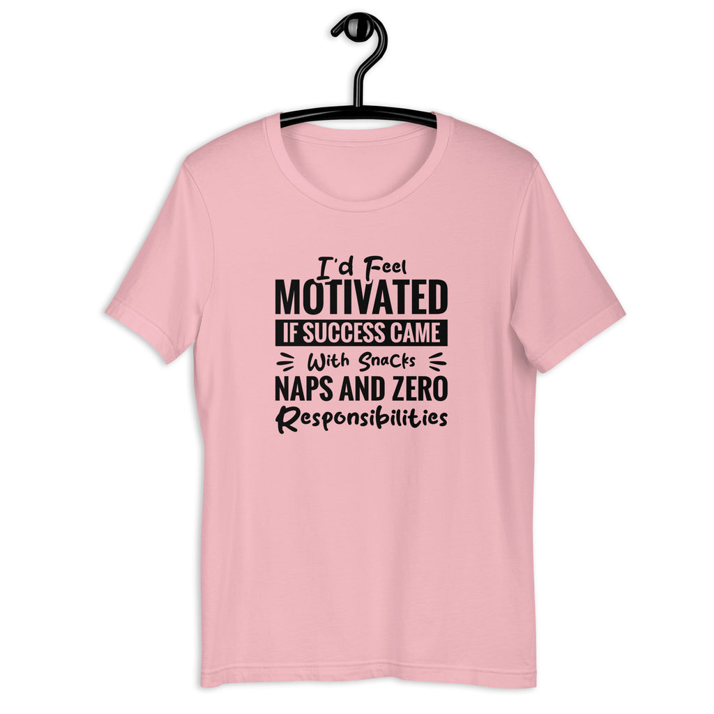 Keep it real with the “I’d Feel Motivated If Success Came With Snacks, Naps, and Zero Responsibilities” T-shirt. Perfect for anyone who would absolutely thrive in life if only adulthood came with better perks, this tee blends humor, honesty, and pure wishful thinking into one relatable statement.