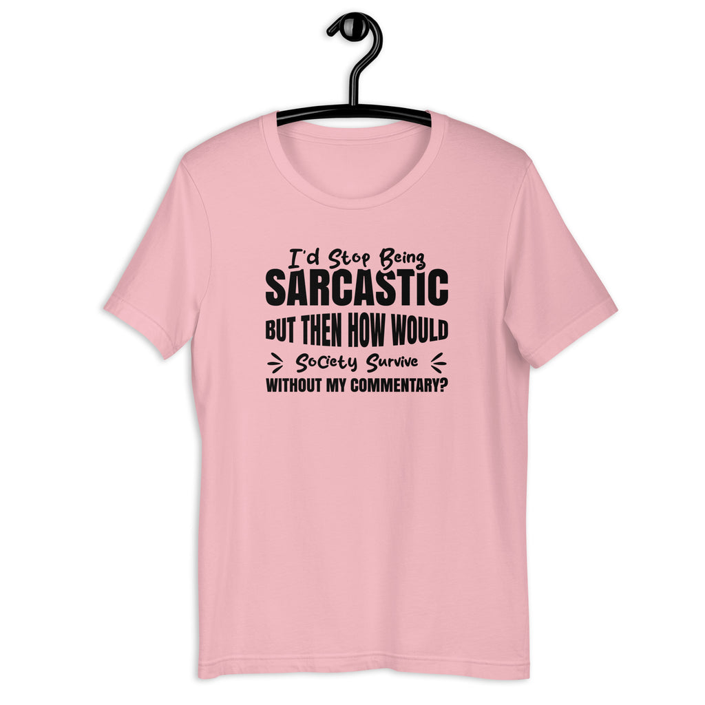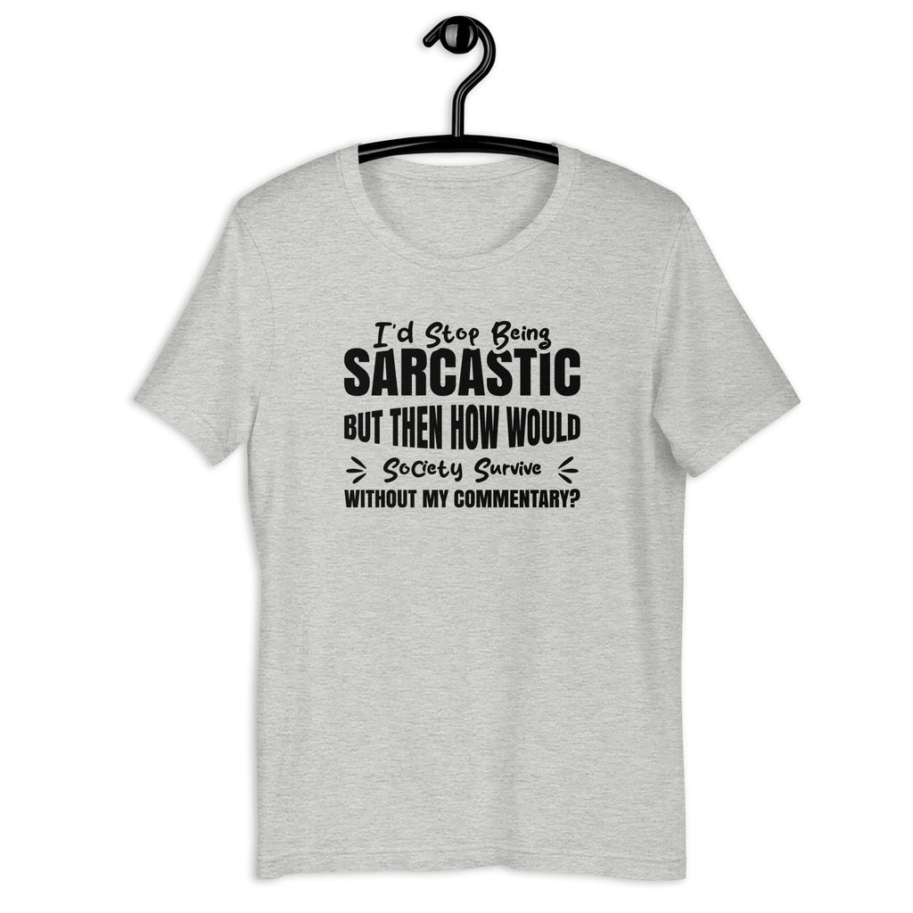 Keep it effortlessly witty with the “I’d Stop Being Sarcastic, But Then How Would Society Survive Without My Commentary?” T-shirt. Perfect for anyone whose sarcasm is practically a public service, this tee highlights the humor of knowing your sharp commentary keeps the world interesting.