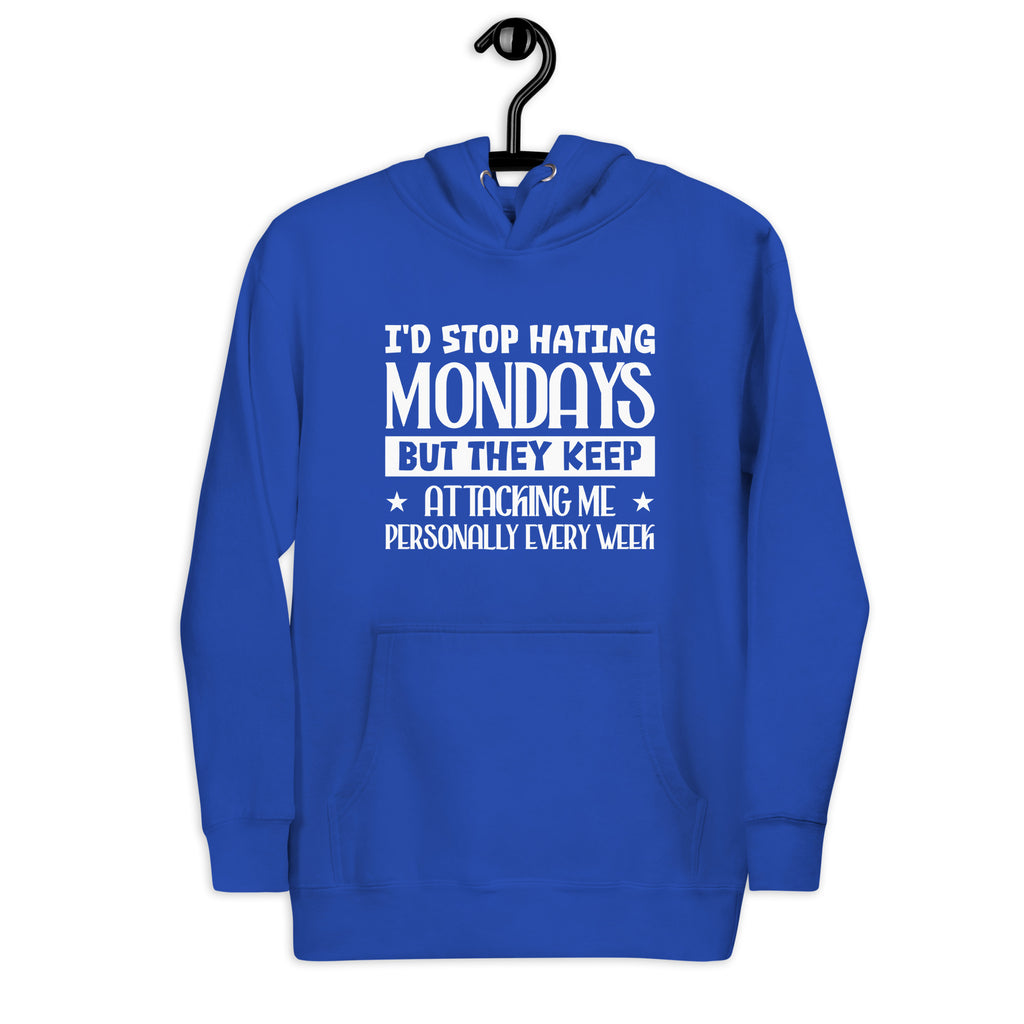 If Mondays had a personality, it would be “aggressively disrespectful.” This “I’d Stop Hating Mondays, But They Keep Attacking Me Personally Every Week” hoodie perfectly captures the weekly struggle of surviving the most uninvited day of them all.