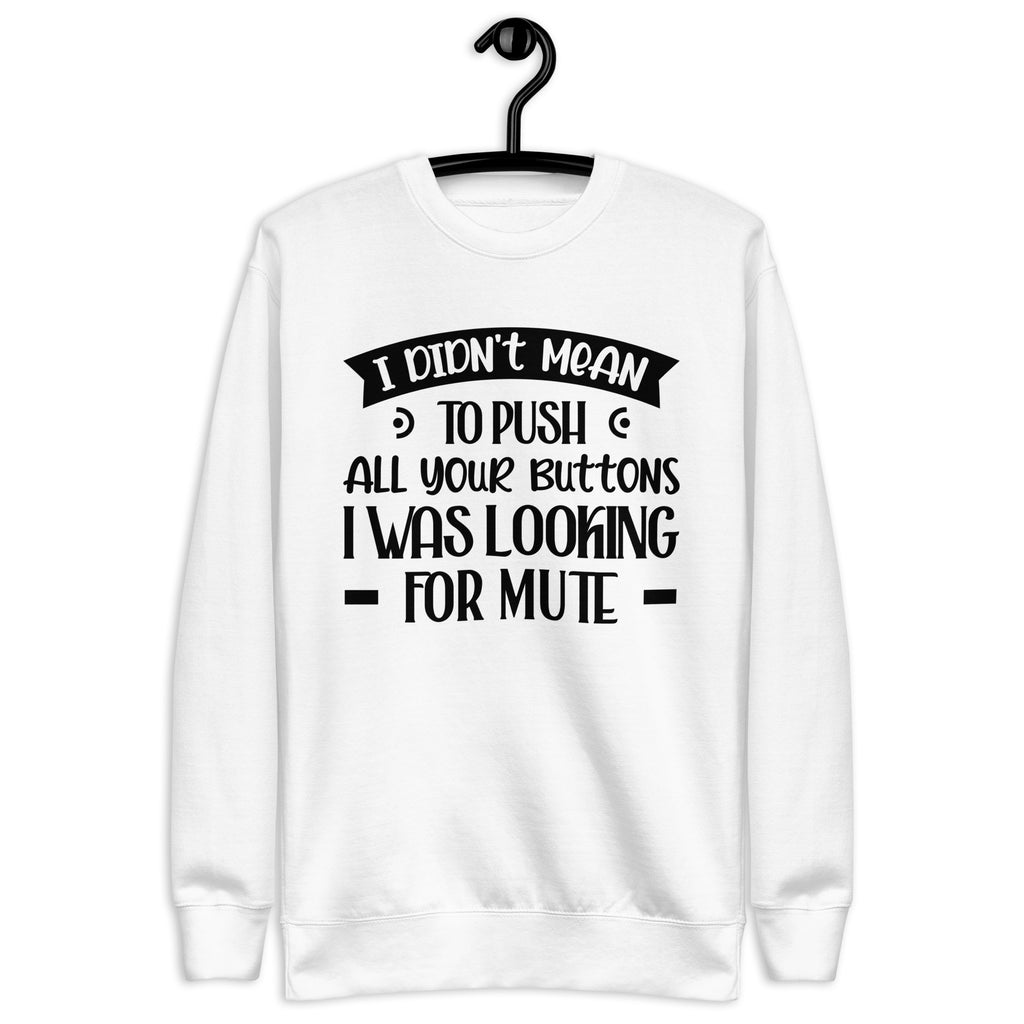 Playful, sarcastic, and dangerously honest — this “I Didn’t Mean To Push All Your Buttons, I Was Looking For Mute” sweatshirt is for anyone who deals with loud opinions, dramatic energy, or people who just… talk too much. When silence is a luxury and patience is running on fumes, this sweater does the talking so you don’t have to.