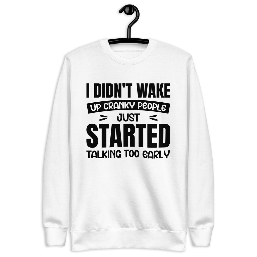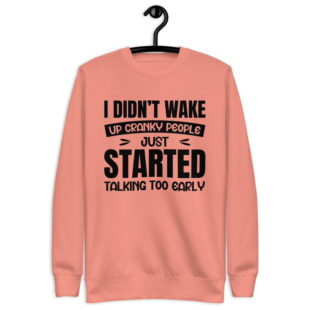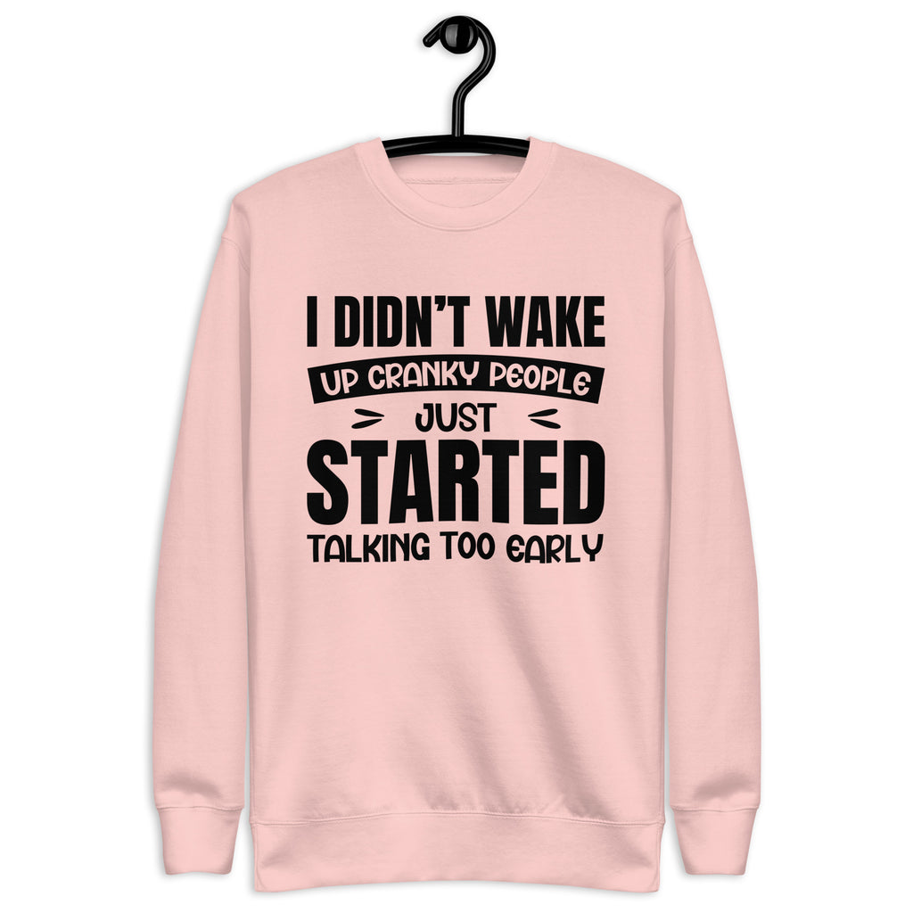 This “I Didn’t Wake Up Cranky — People Just Started Talking Too Early” sweatshirt is for anyone who wakes up fine… until other humans get involved. Perfectly snarky and painfully relatable, it’s your cozy armor for mornings when silence is golden and conversation is a crime.