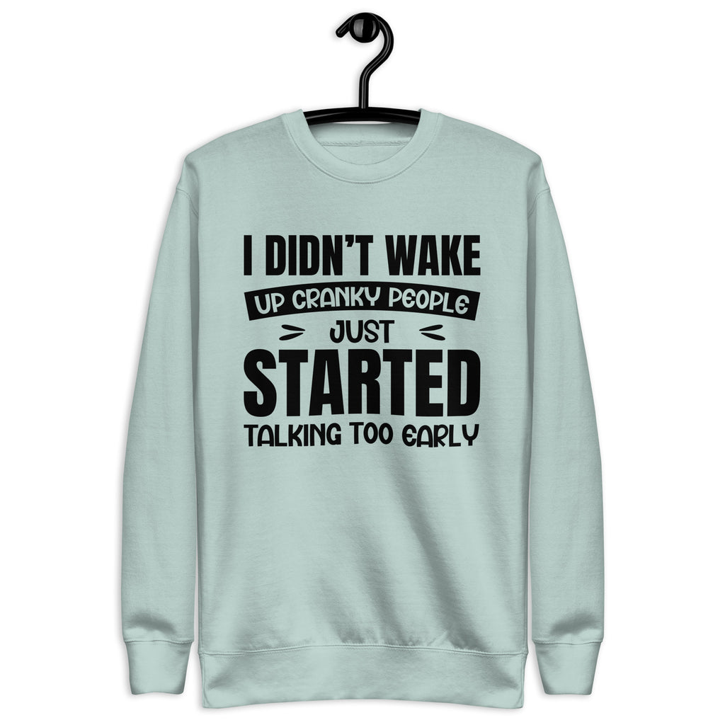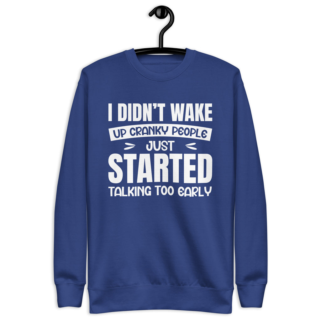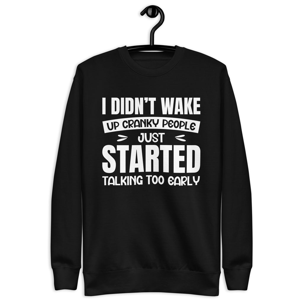 This “I Didn’t Wake Up Cranky — People Just Started Talking Too Early” sweatshirt is for anyone who wakes up fine… until other humans get involved. Perfectly snarky and painfully relatable, it’s your cozy armor for mornings when silence is golden and conversation is a crime.