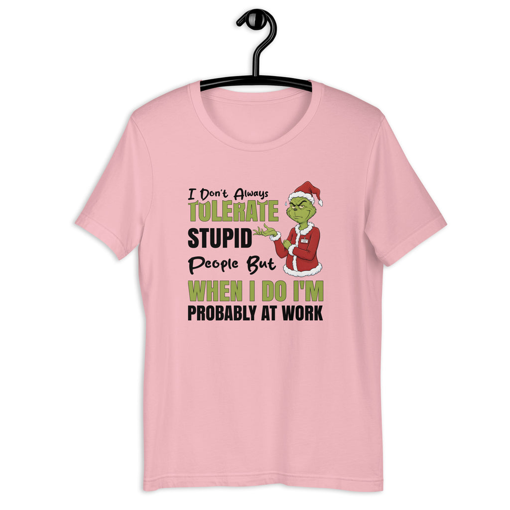 Bring some sarcastic workplace truth to your wardrobe with the “I Don’t Always Tolerate Stupid People, But When I Do I’m Probably at Work — G. Grinch Clerk” T-shirt. Perfect for anyone who deals with chaos, nonsense, and questionable logic on the job, this tee delivers humor with a festive twist and a dash of Grinch-level attitude.