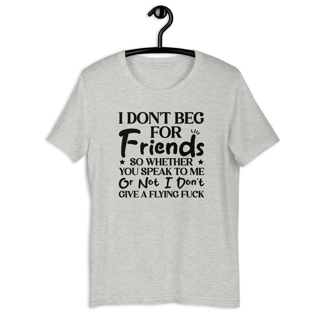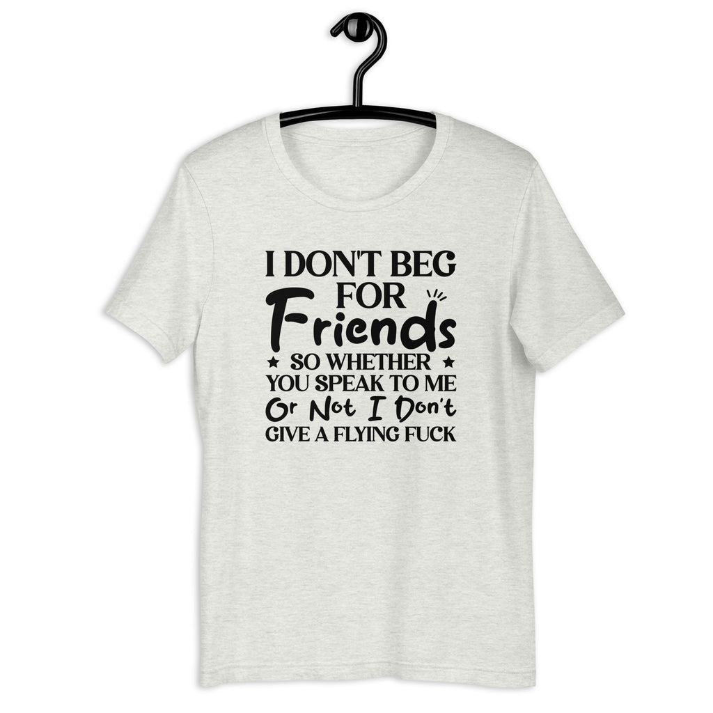 Blunt, fearless, and completely unbothered. The “I Don’t Beg Friends—So Whether You Speak to Me or Not, I Don’t Give a Flying F*ck” T-shirt is a hard line drawn in bold letters. It’s for those who value self-respect over fake connections and refuse to chase people who don’t show up.