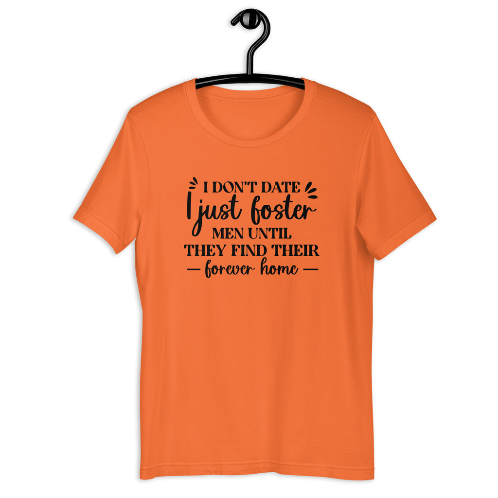 Dating? Not exactly. The “I Don’t Date, I Just Foster Men Until They Find Their Forever Home” t-shirt is a hilarious twist on modern relationships and the revolving door of “almosts.”