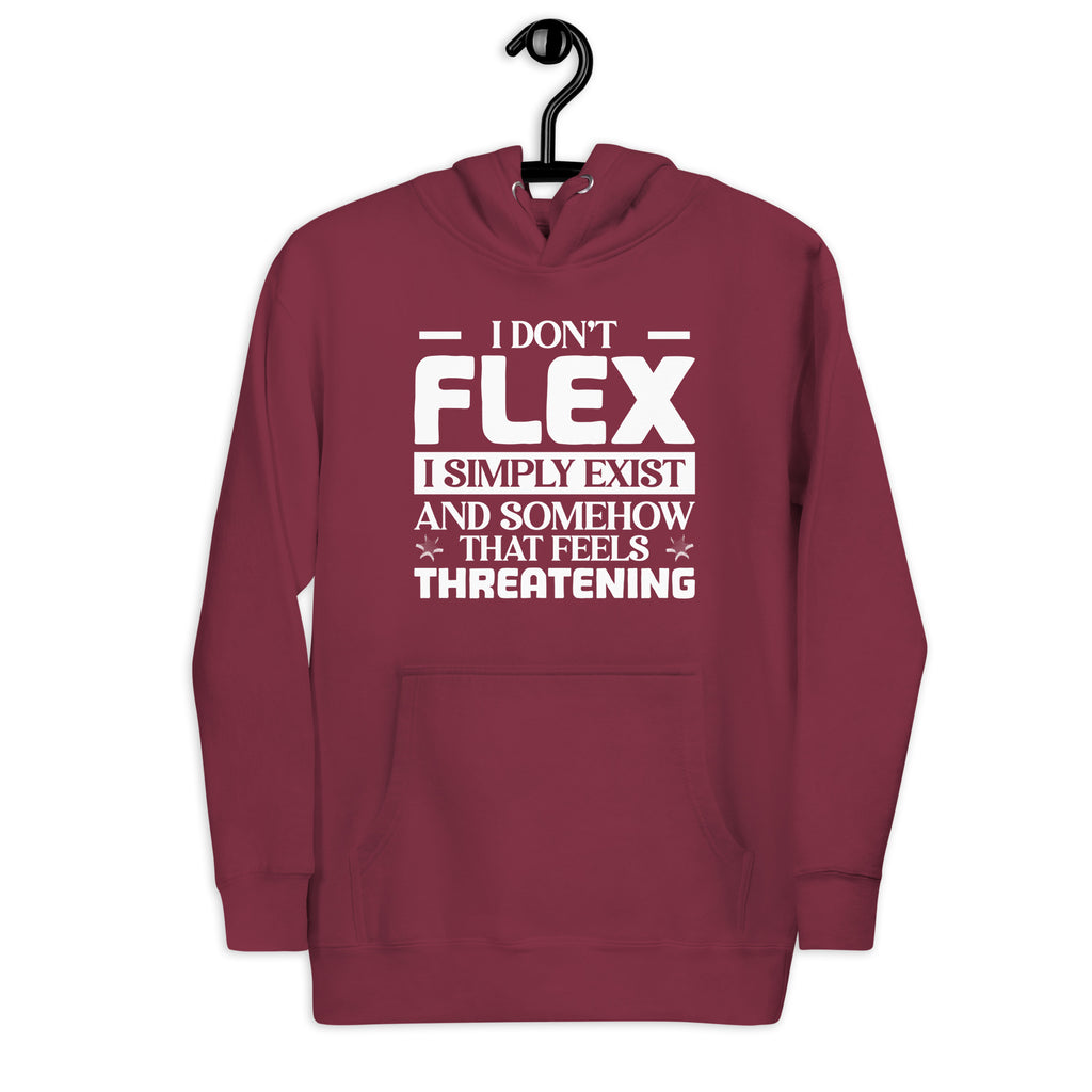 This “I Don’t Flex — I Simply Exist, and Somehow That Feels Threatening” hoodie is for the ones who don’t have to try to stand out — their presence does all the work. Calm, confident, and effortlessly powerful, it’s made for those whose natural energy makes a statement without saying a word.