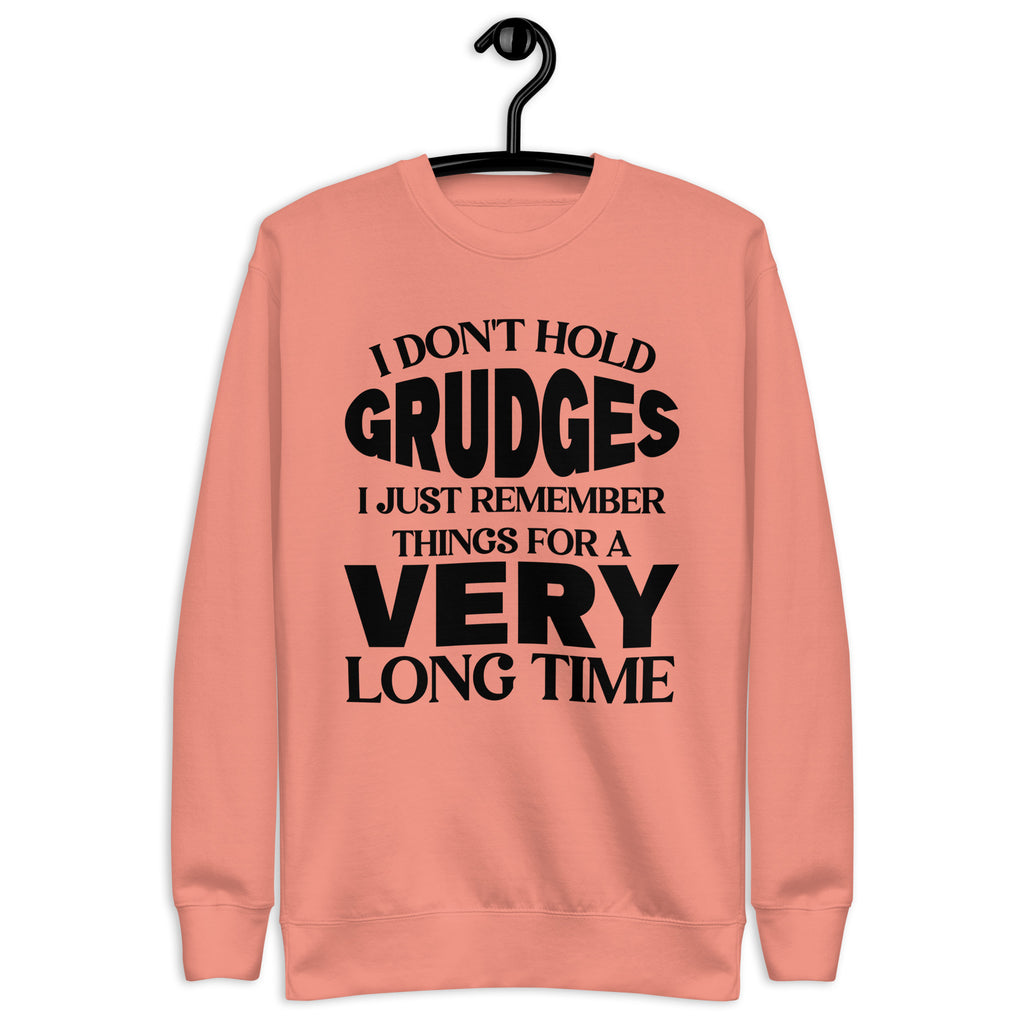 Keep it real with the “I Don’t Hold Grudges, I Just Remember Things for a Very Long Time” sweatshirt — the perfect mix of humor and honesty. Ideal for anyone who never forgets (and never lets it go), this cozy sweatshirt shows off your witty side while keeping you warm.