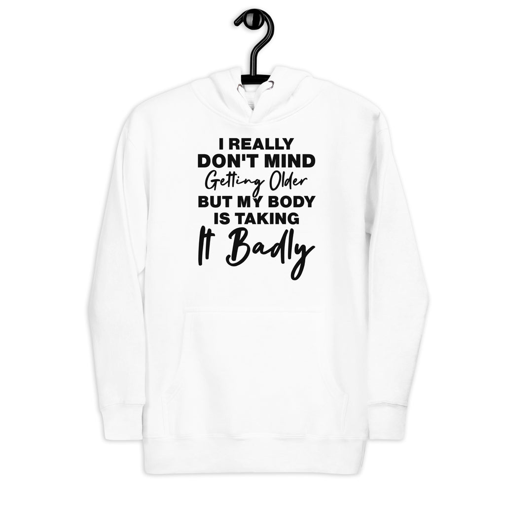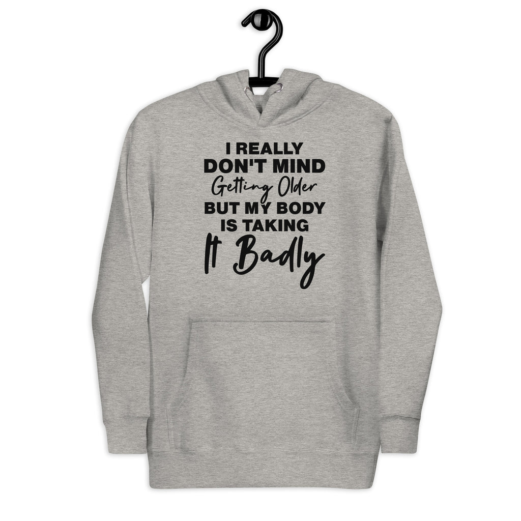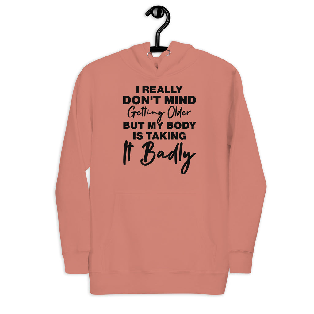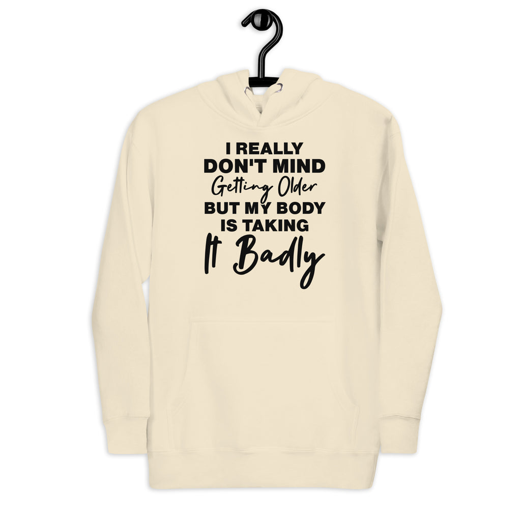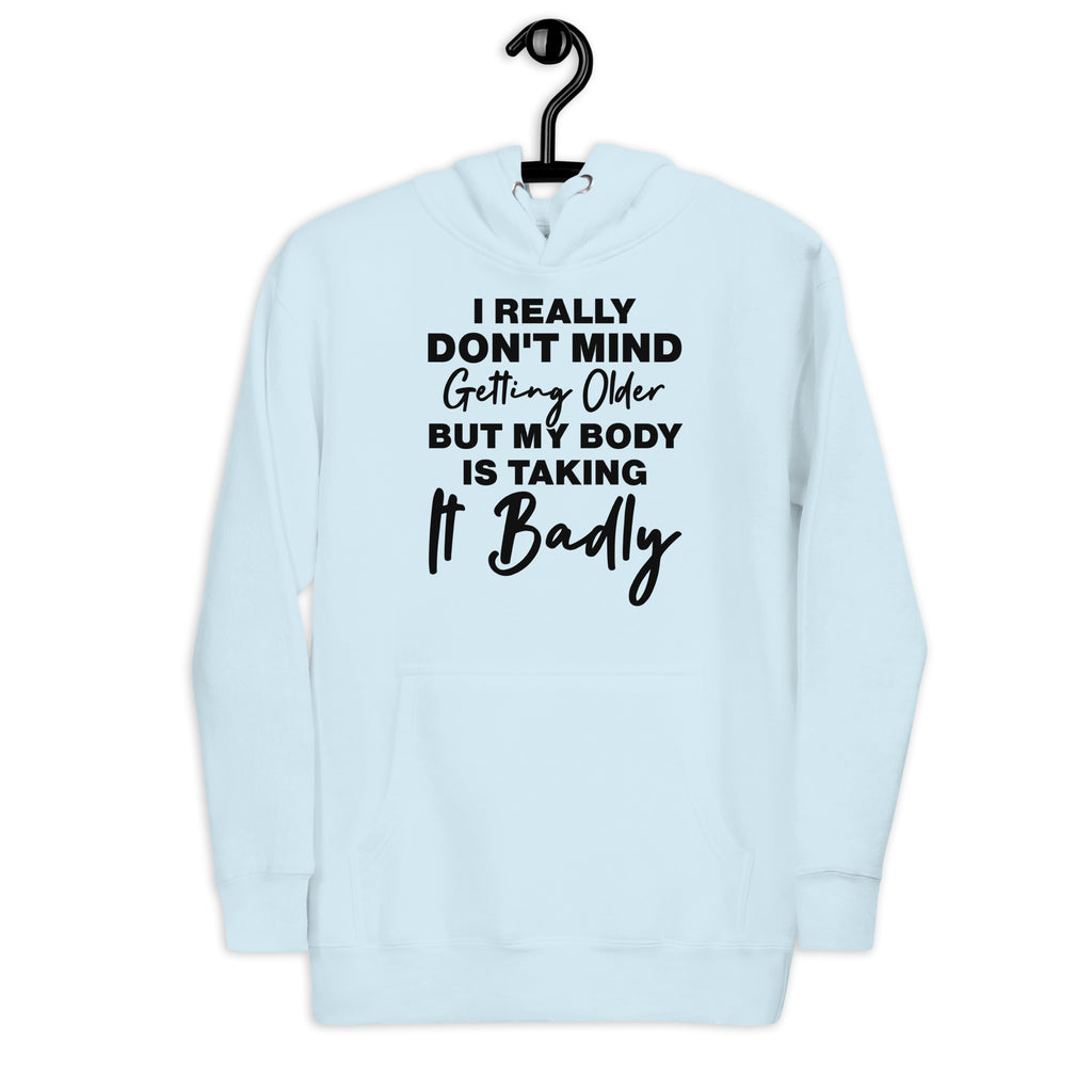 Stay warm while keeping it real with this “I Don’t Mind Getting Older But My Body Is Taking It Badly” hoodie. Funny, sarcastic, and totally relatable, this hoodie is perfect for anyone who feels young at heart but knows their body has other plans.