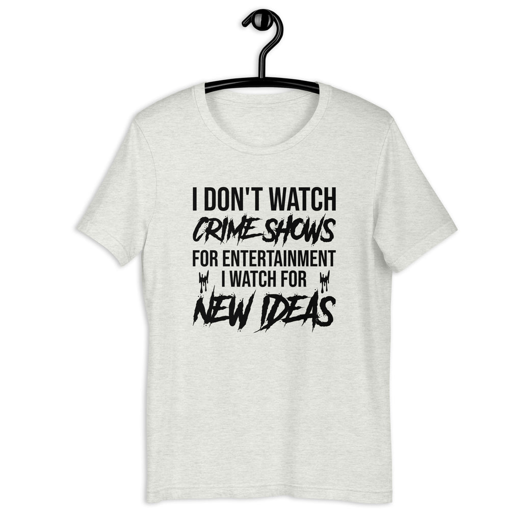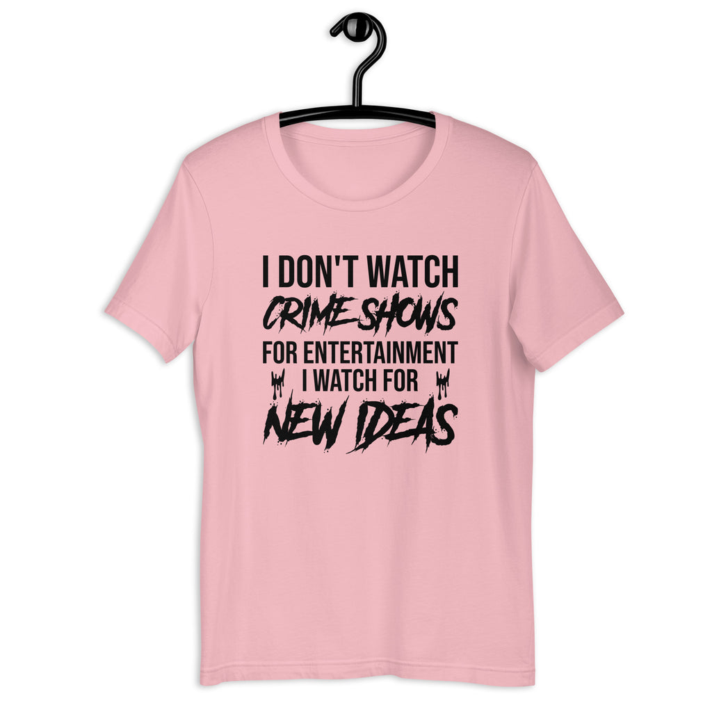 Show off your twisted sense of humor with the “I Don’t Watch Crime Shows for Entertainment, I Watch for New Ideas” t-shirt. Perfect for true crime fans and sarcastic personalities, this tee mixes wit with just the right amount of mischief.