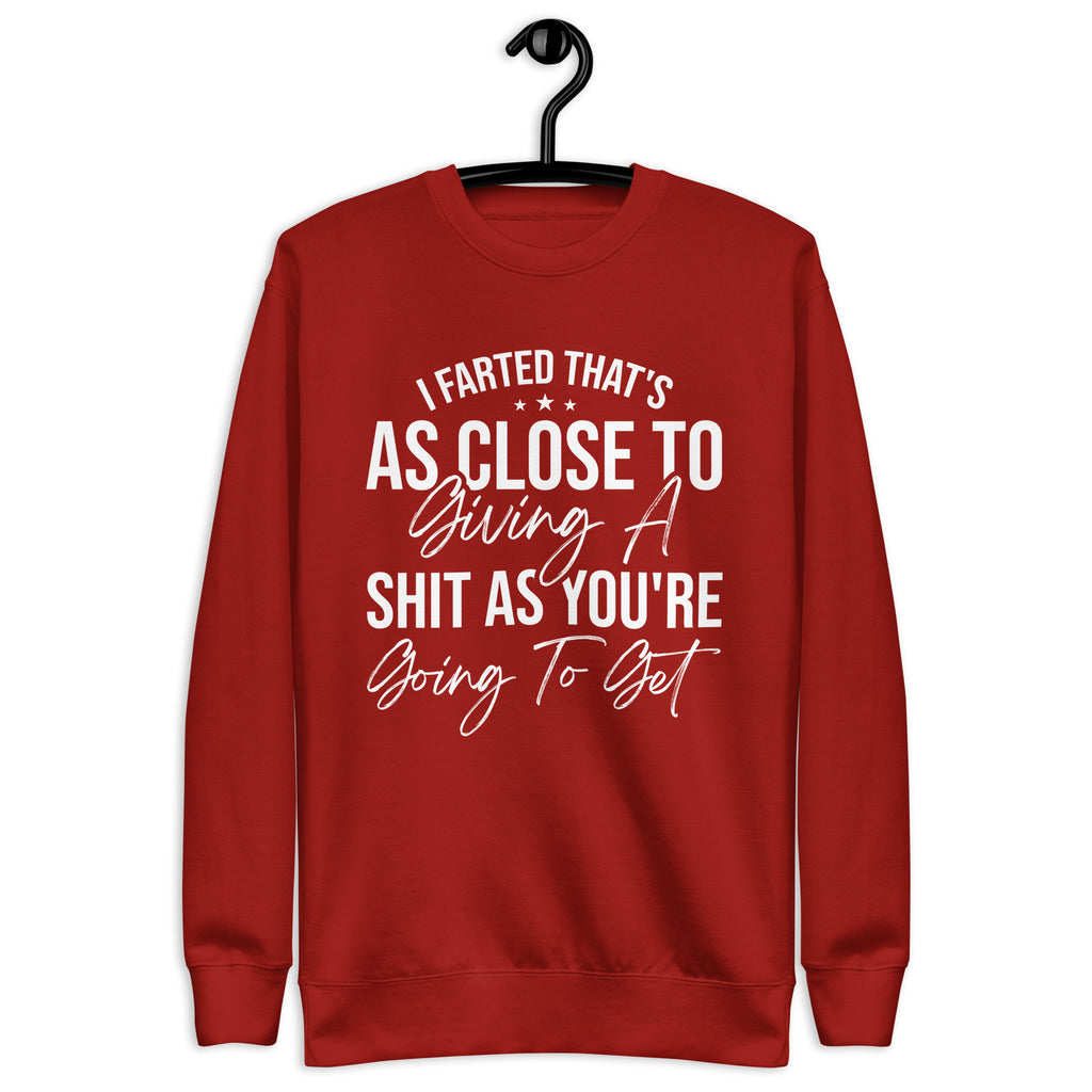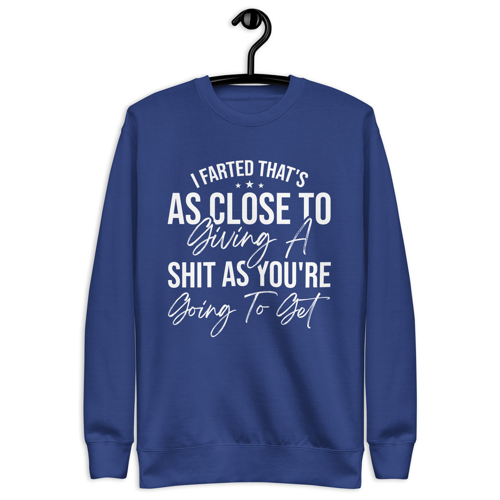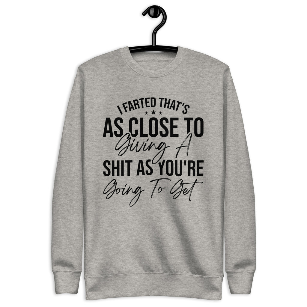 Blunt, hilarious, and absolutely done with pretending — this “I Farted, That’s As Close To Giving A Sh*t As You’re Gonna Get” sweatshirt is for those who ran out of patience and politeness at the same time. If your tolerance is low, your humor is savage, and your honesty is… well… explosive, this is the perfect way to warn the world.