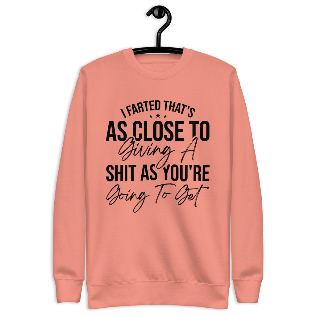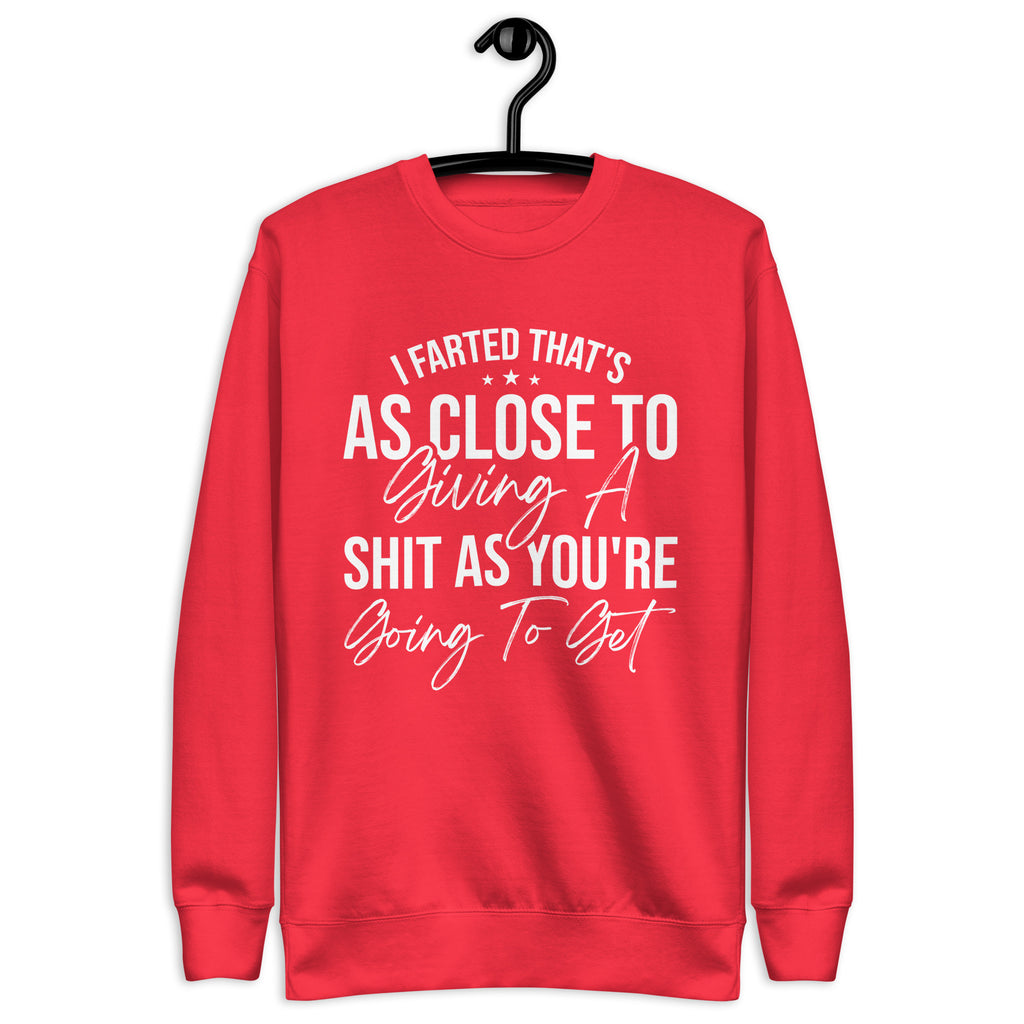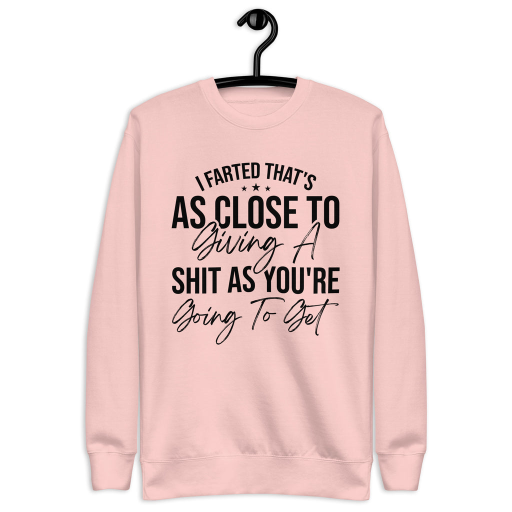 Blunt, hilarious, and absolutely done with pretending — this “I Farted, That’s As Close To Giving A Sh*t As You’re Gonna Get” sweatshirt is for those who ran out of patience and politeness at the same time. If your tolerance is low, your humor is savage, and your honesty is… well… explosive, this is the perfect way to warn the world.