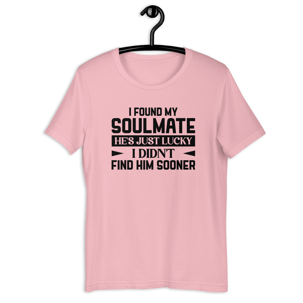 Celebrate love with a twist of attitude in the “I Found My Soulmate — He’s Just Lucky I Didn’t Find Him Sooner” T-shirt — the perfect mix of sweetness, humor, and just a hint of chaos. This tee captures that relatable feeling of loving your person deeply… while joking that life might’ve been a little louder, wilder, or more dramatic if you’d met earlier.
