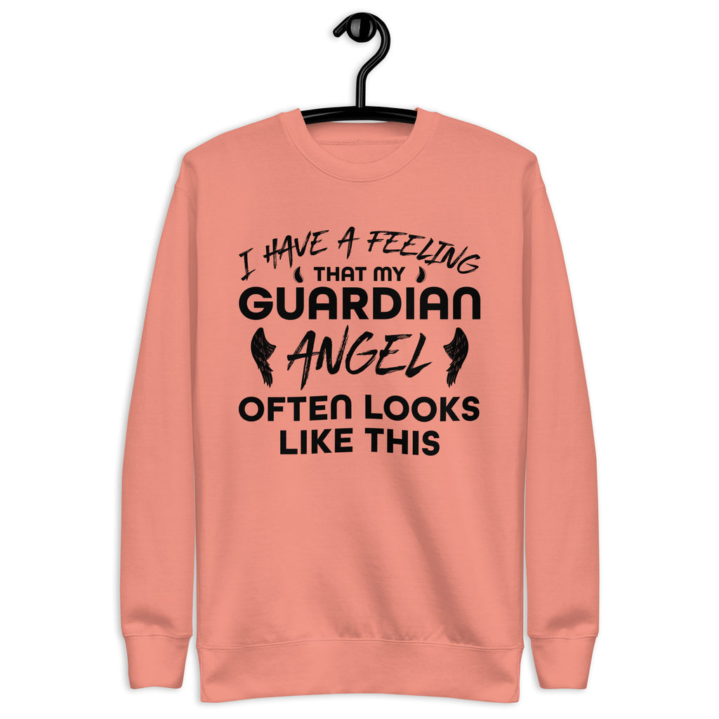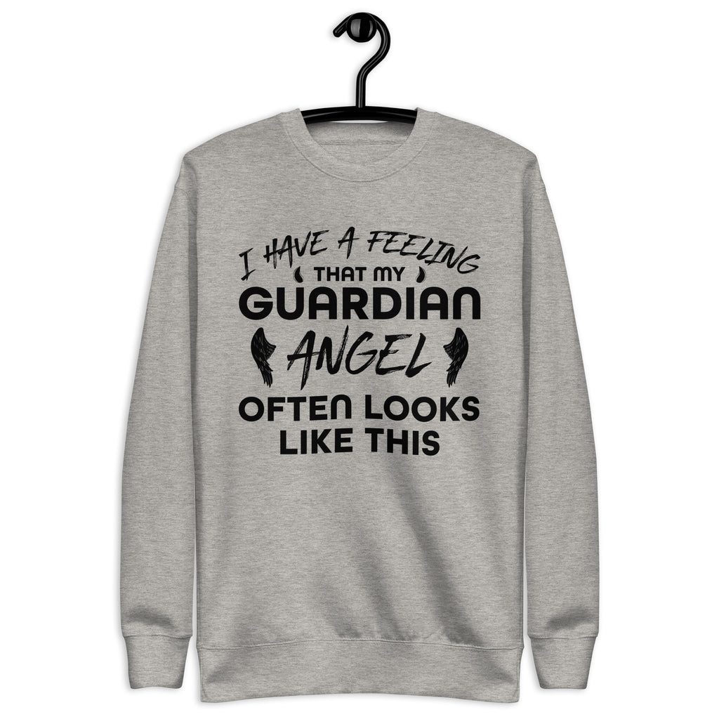 Bring humor to your wardrobe with the “I Have a Feeling That My Guardian Angel Often Looks Like This” hoodie — a playful design for anyone who knows their angel has their hands full. Equal parts cozy and comical, this hoodie is perfect for those who like their faith sprinkled with a little sass.