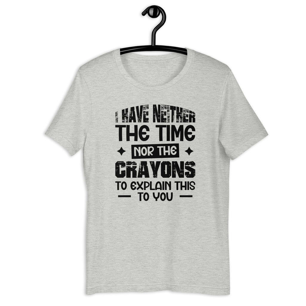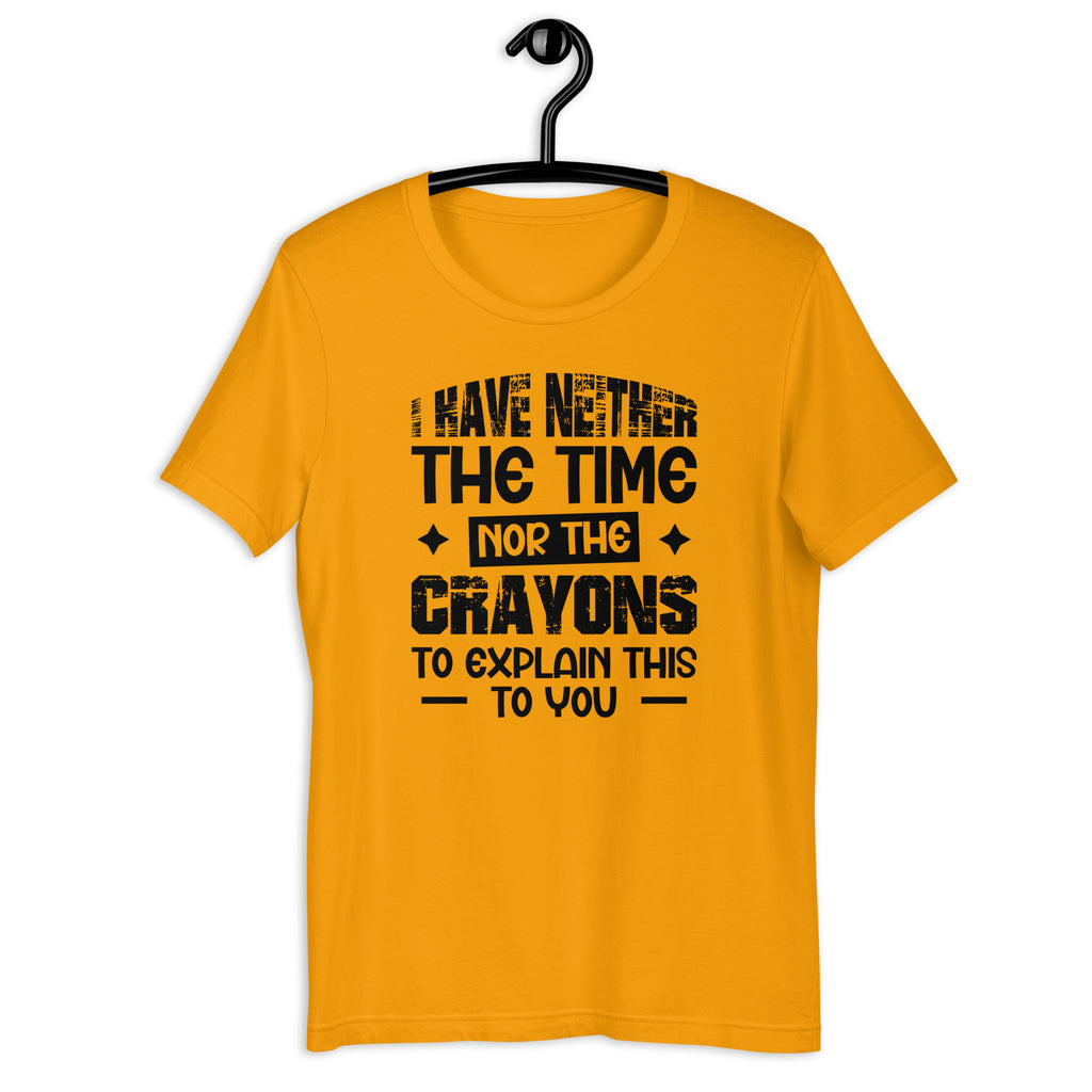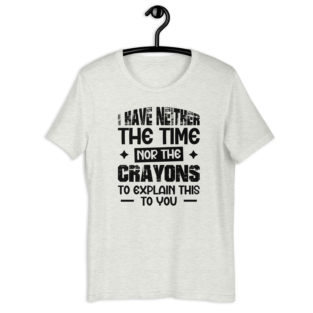 Say it loud without saying a word with this “I Have Neither the Time Nor the Crayons to Explain This to You” t-shirt. Perfect for anyone who’s run out of patience for nonsense, this funny and sarcastic tee delivers the message loud and clear — with a touch of playful attitude.
