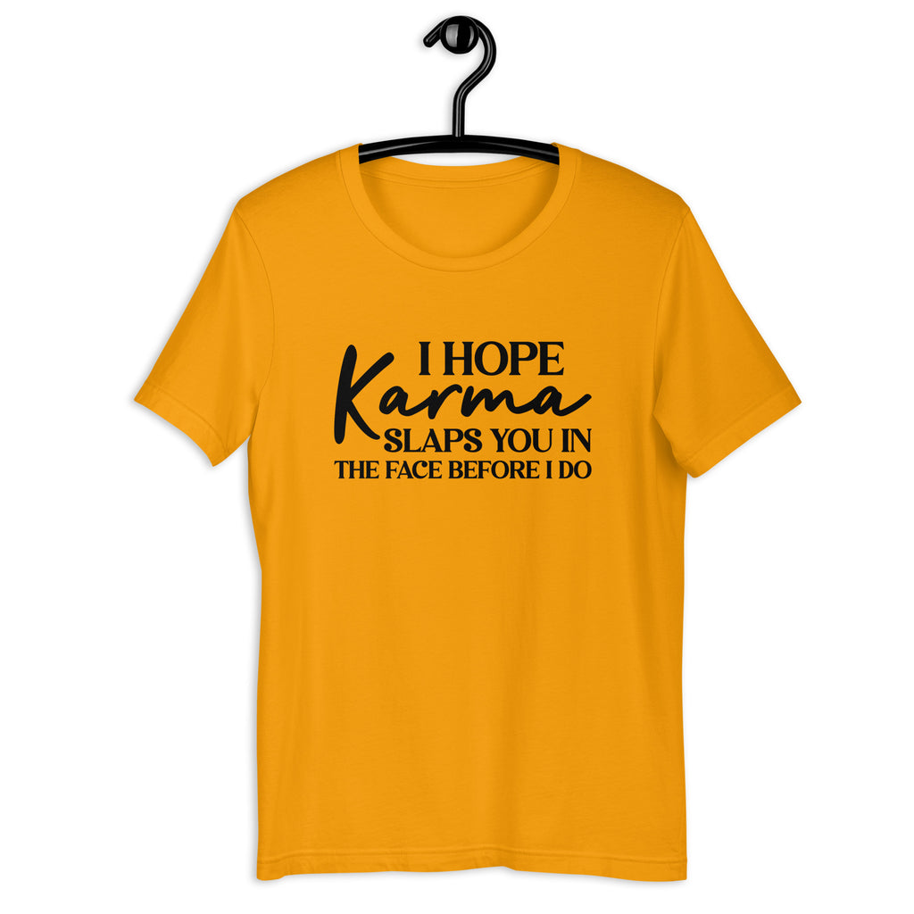 Bold, unapologetic, and dripping with attitude. The “I Hope Karma Slaps You in the Face Before I Do” t-shirt is made for those who believe in consequences—and aren’t afraid to say it out loud. It delivers the perfect mix of dark humor and confidence, making it a go-to piece for anyone with a sharp wit and zero tolerance for nonsense.