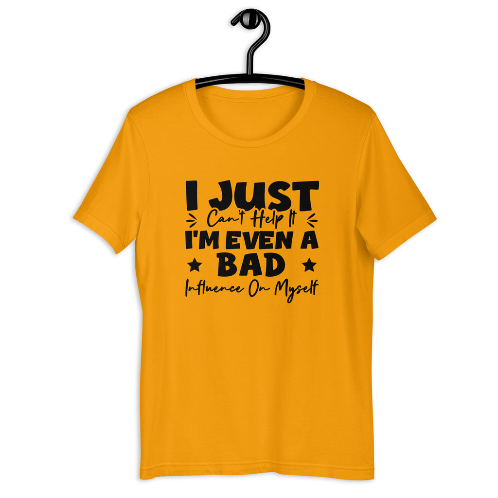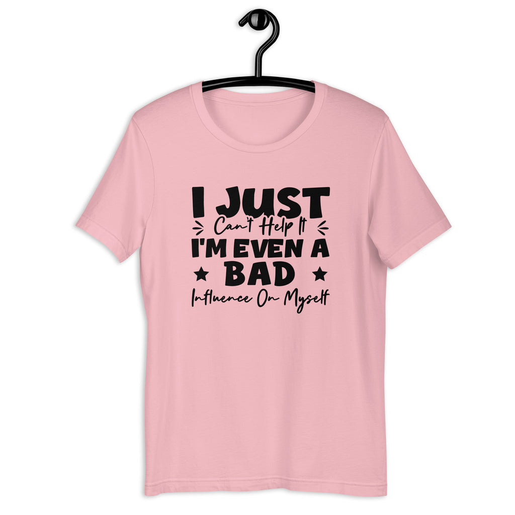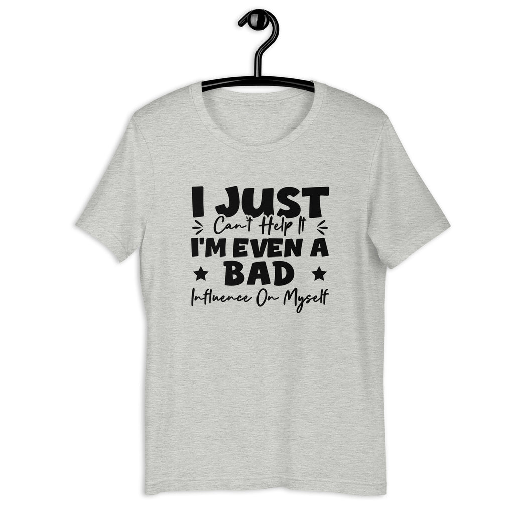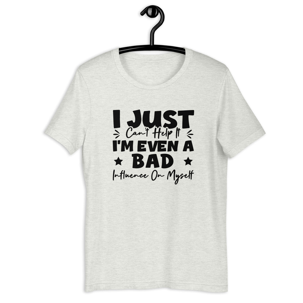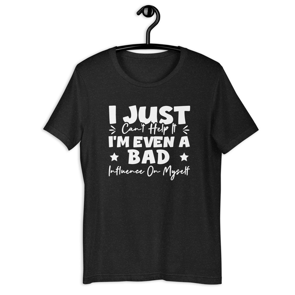 Playful, self-aware, and unapologetically honest. The “I Just Can’t Help It — I’m Even a Bad Influence on Myself” t-shirt is made for those who own their flaws and laugh at them. It’s a lighthearted statement of individuality, confidence, and embracing who you are—no explanations needed.