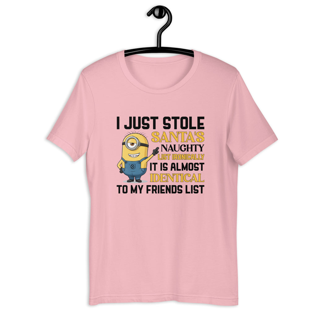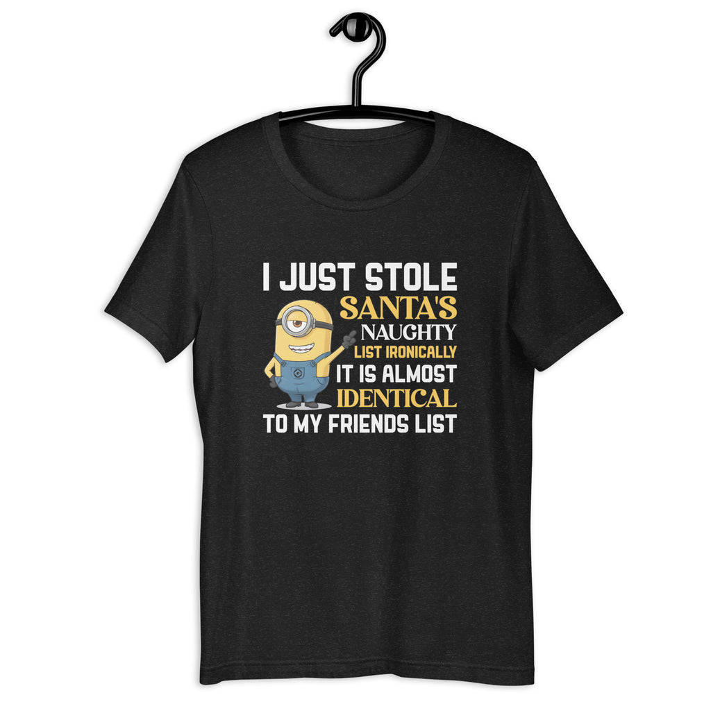 Bring mischievous holiday humor to the spotlight with the “I Just Stole Santa’s Naughty List — Ironically, It’s Almost Identical to My Friends List” T-shirt. Perfect for those whose social circle leans a little naughty (and proud of it), this tee delivers festive sarcasm with a knowing grin.