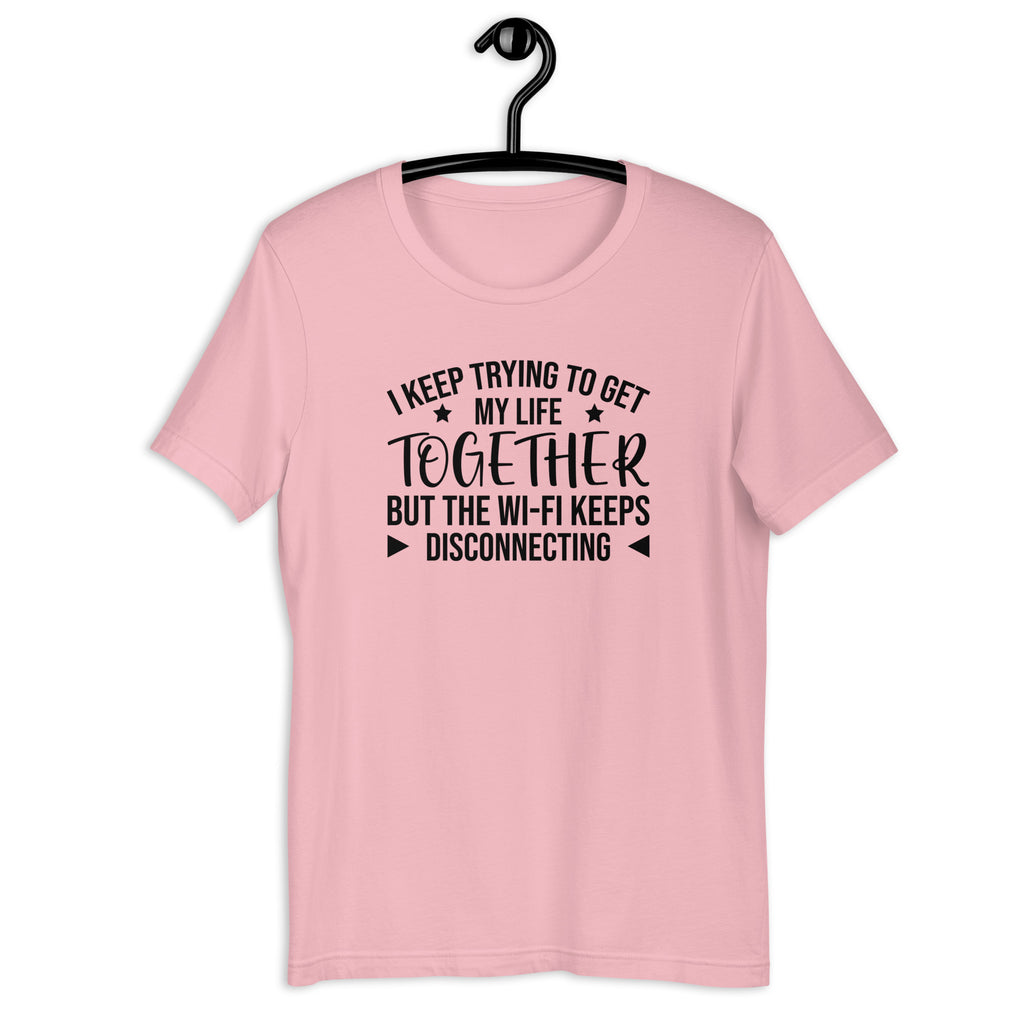 Keep it real with the “I Keep Trying to Get My Life Together but the Wi-Fi Keeps Disconnecting” T-shirt. Designed for anyone whose entire productivity relies on a stable internet connection, this tee blends humor and hard truth into one perfectly relatable statement.