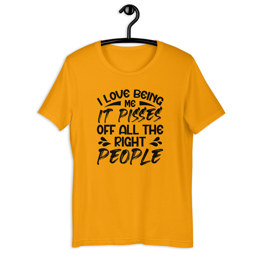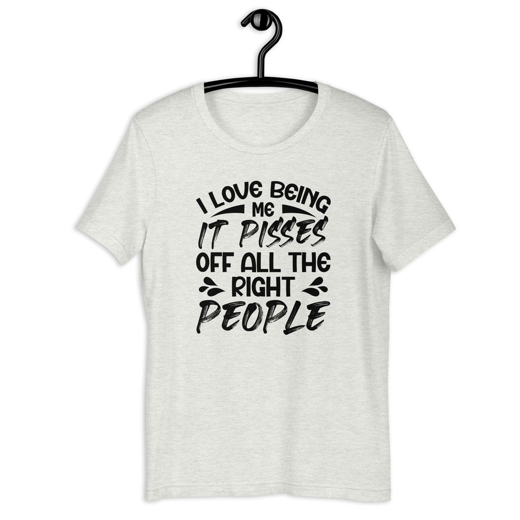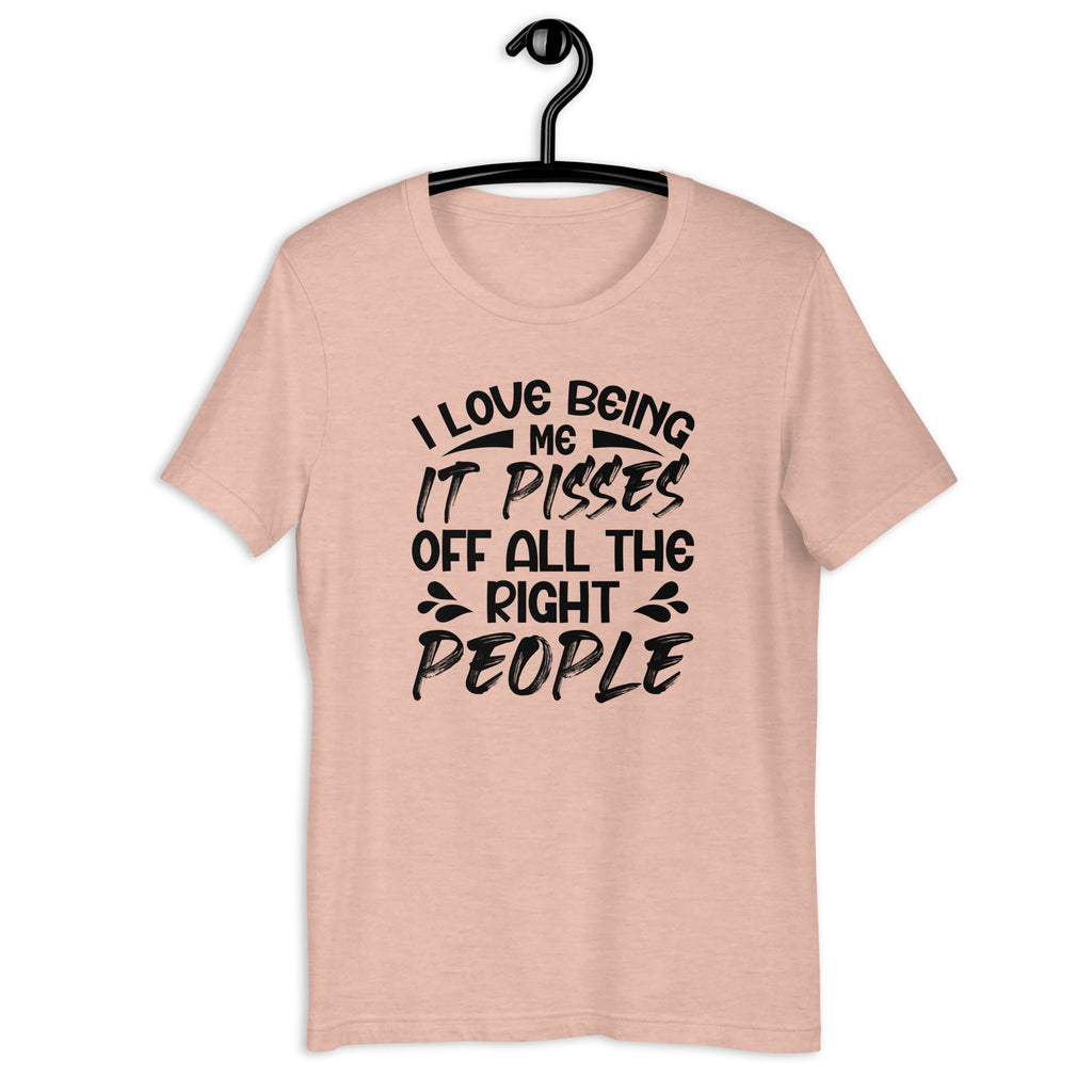 Own your confidence with the “I Love Being Me—It Pisses Off All The Right People” t-shirt. Fierce, funny, and unapologetic, this tee is all about celebrating authenticity while giving a playful nod to the fact that not everyone can handle it.