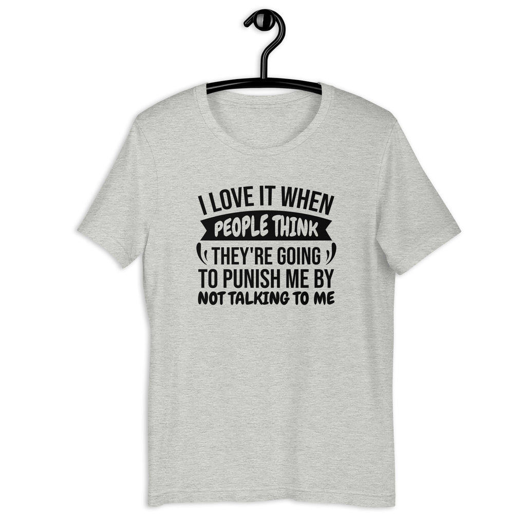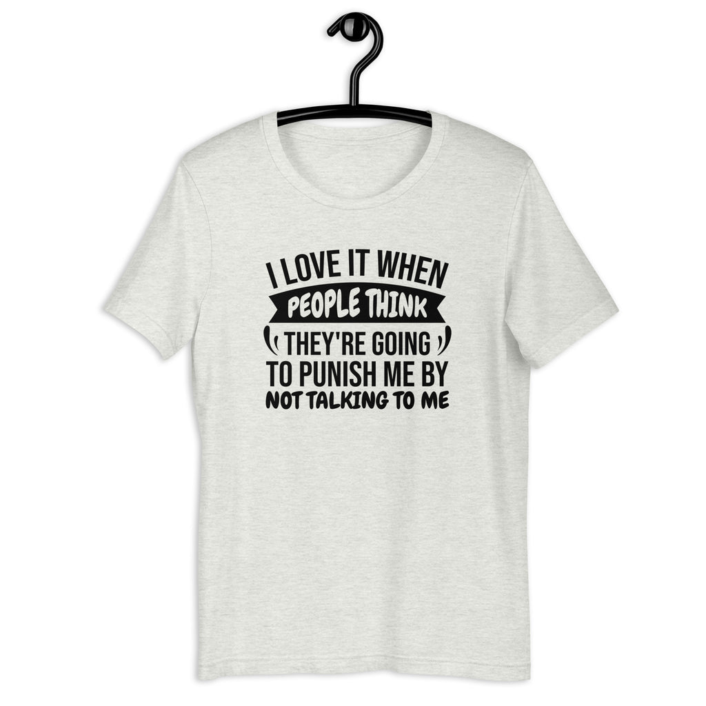Silence has never sounded so sweet. This sarcastic tee is perfect for anyone who thrives on peace and quiet while others think they’re delivering some kind of punishment. Bold, witty, and a little savage, it’s a guaranteed laugh for those who know that sometimes the best conversations are the ones that never happen.