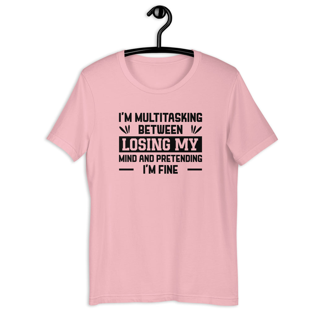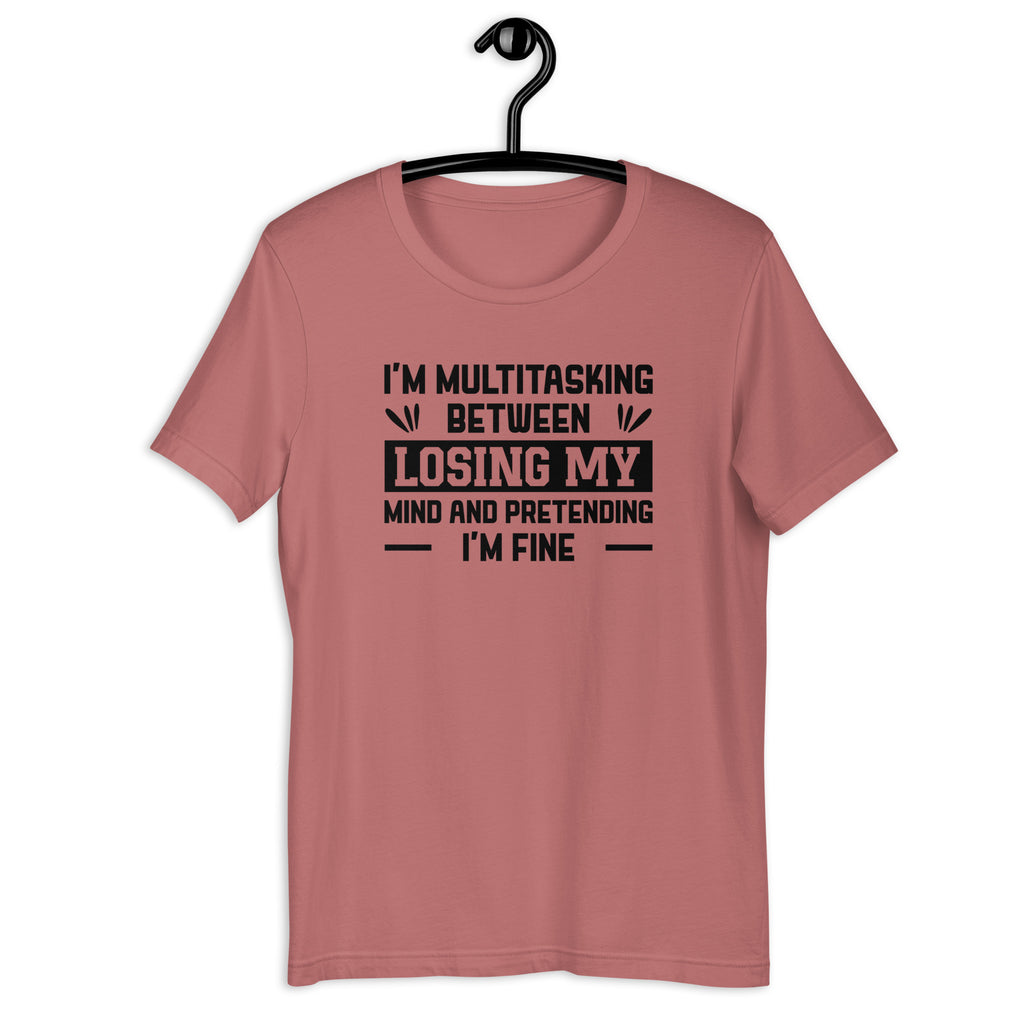 Embrace your beautifully chaotic balancing act with the “I’m Multitasking Between Losing My Mind and Pretending I’m Fine” T-shirt. Perfect for anyone who juggles stress, sarcasm, and survival with impressive skill, this tee captures the hilarious truth of holding it together… while absolutely not holding it together.