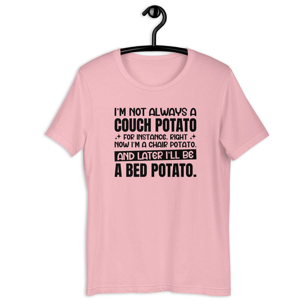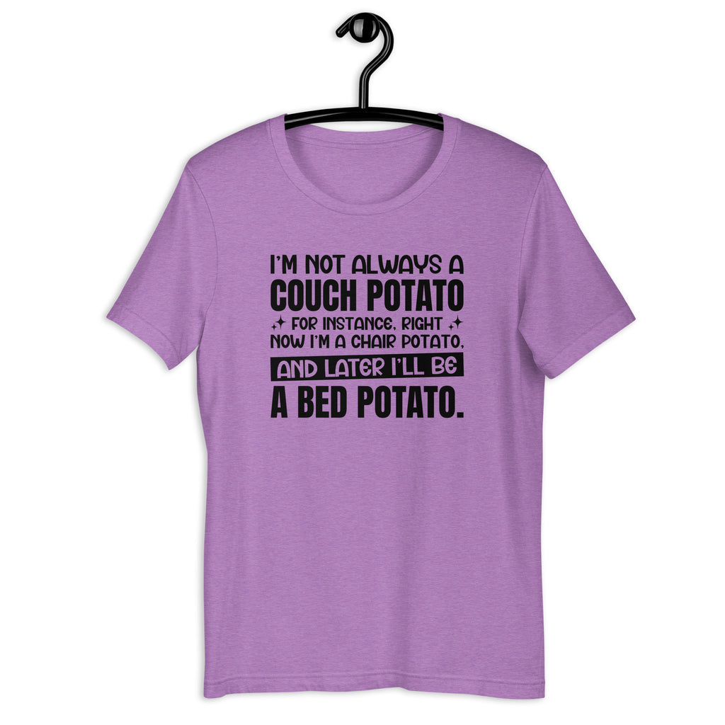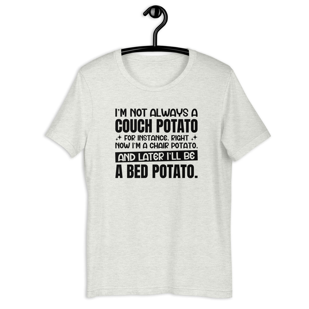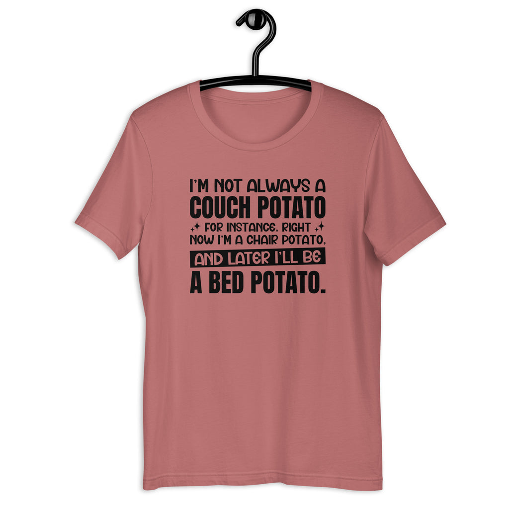 Show off your lazy-day humor with the “I’m not always a couch potato. For instance, right now I’m a chair potato and later I’ll be a bed potato” t-shirt. Perfect for anyone who takes relaxation seriously, this tee celebrates the art of doing absolutely nothing — in style.