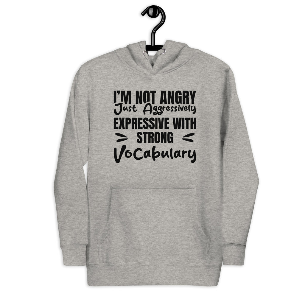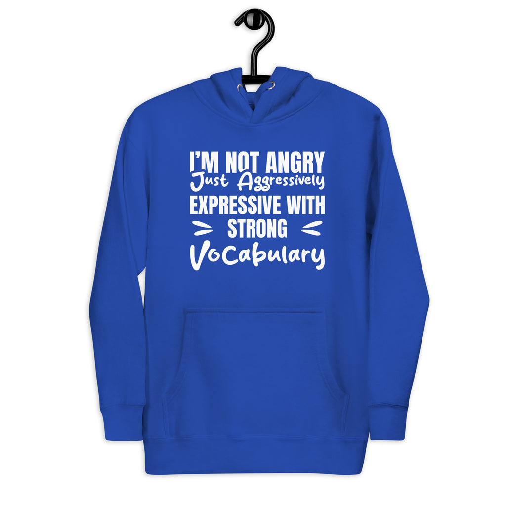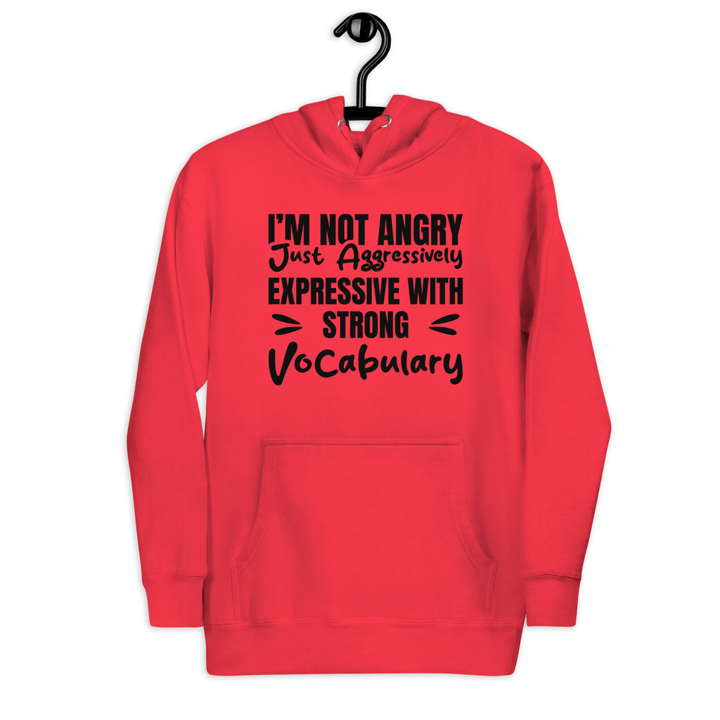 Turn up the attitude with this “I’m Not Angry — Just Aggressively Expressive with a Strong Vocabulary” hoodie. Perfect for anyone who feels things deeply, speaks fluently in dramatic emphasis, and refuses to apologize for having big reactions and even bigger words.