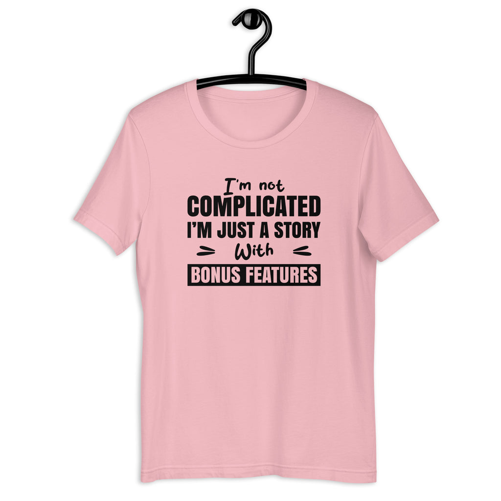 Embrace your wonderfully layered personality with the “I’m Not Complicated — I’m Just a Story with Bonus Features” T-shirt. Perfect for anyone who comes with depth, twists, and a little extra content, this tee captures the hilarious truth of being more than meets the eye — and proudly so.