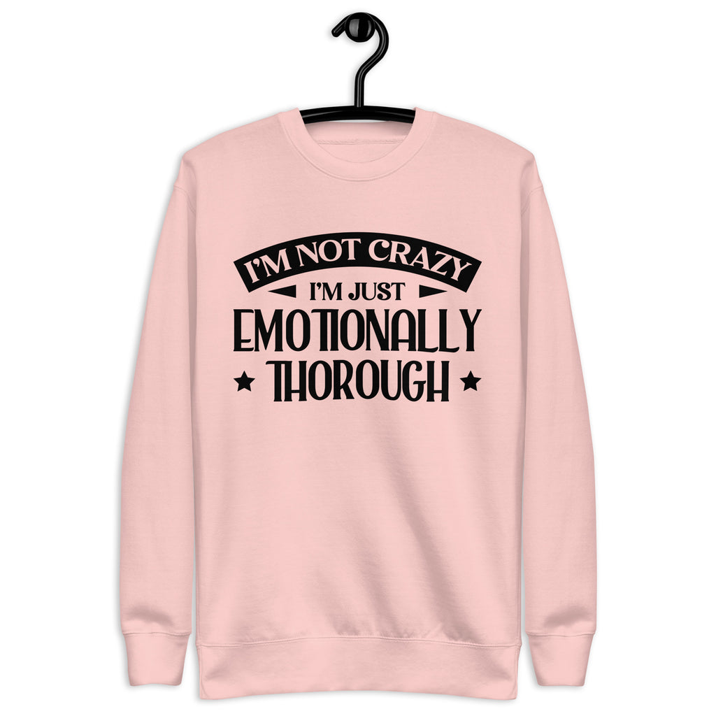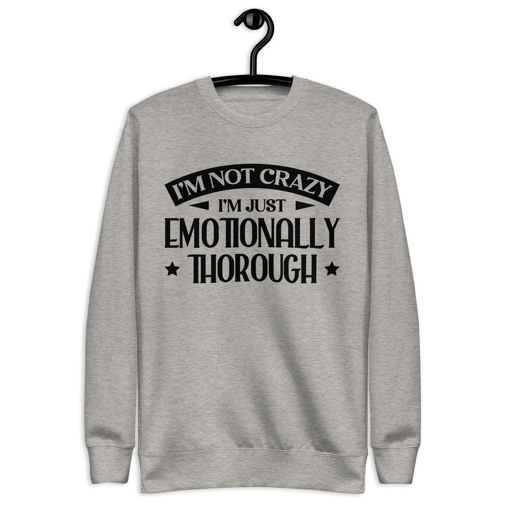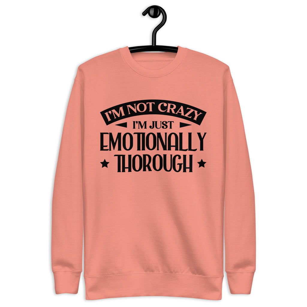 This “I’m Not Crazy, I’m Just Emotionally Thorough” sweatshirt is for those who feel everything deeply, overthink with precision, and react with… enthusiasm. Equal parts witty and relatable, it’s the perfect blend of humor and self-awareness for anyone who refuses to apologize for having range.