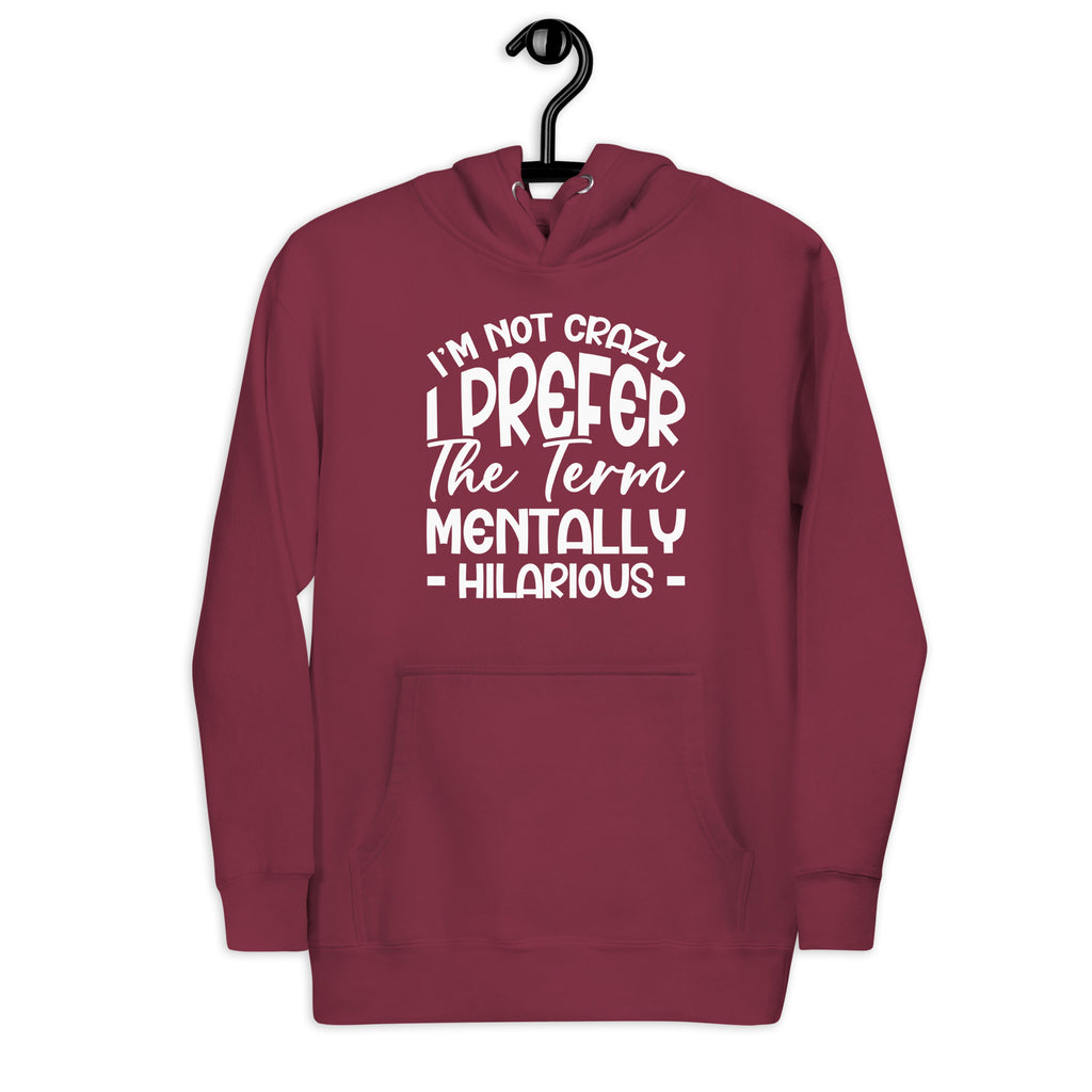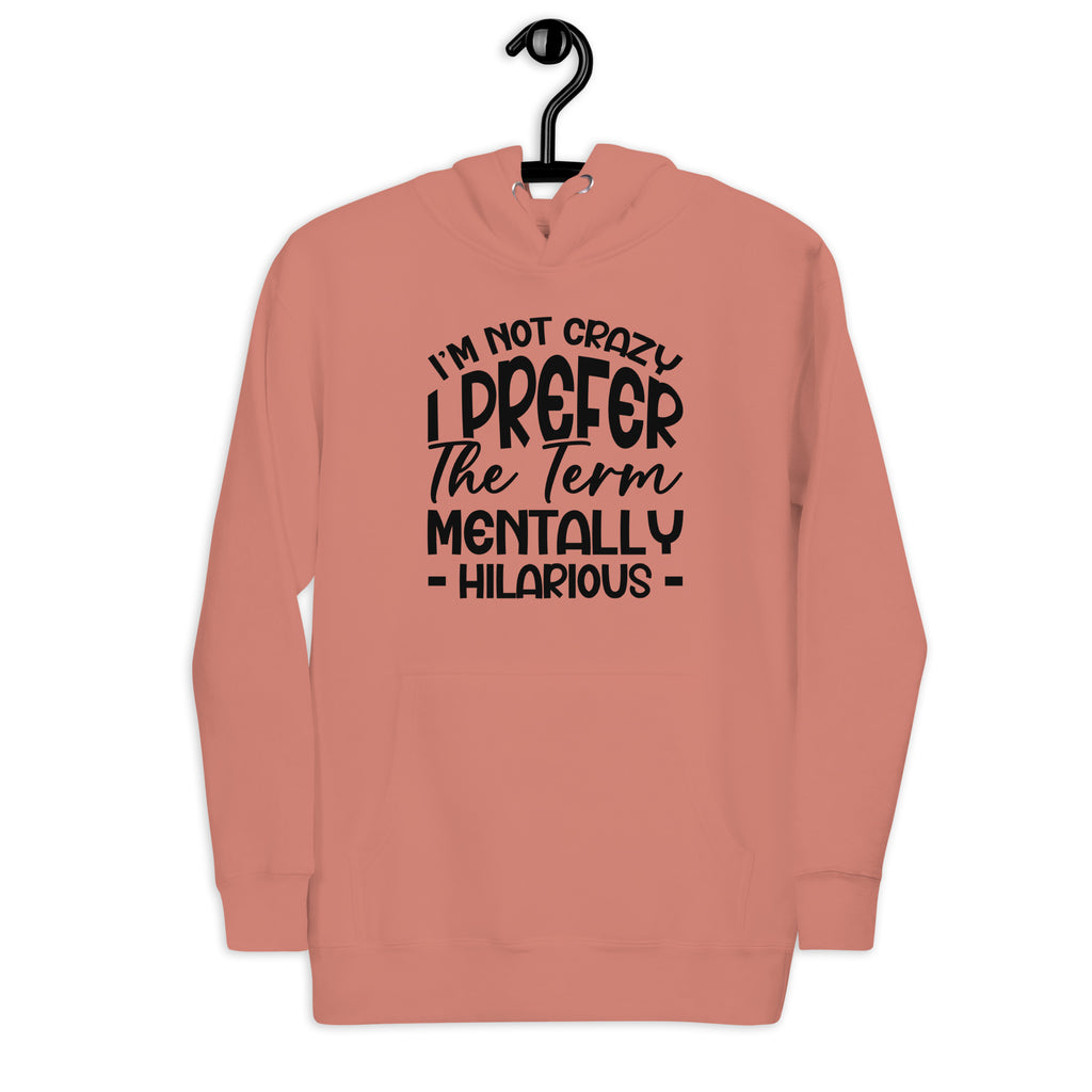 Quirky, unpredictable, and proudly operating on a different wavelength — this “I’m Not Crazy, I Prefer the Term Mentally Hilarious” hoodie is for the people whose personalities come with extra sparkle, extra drama, and a natural talent for making life entertaining.